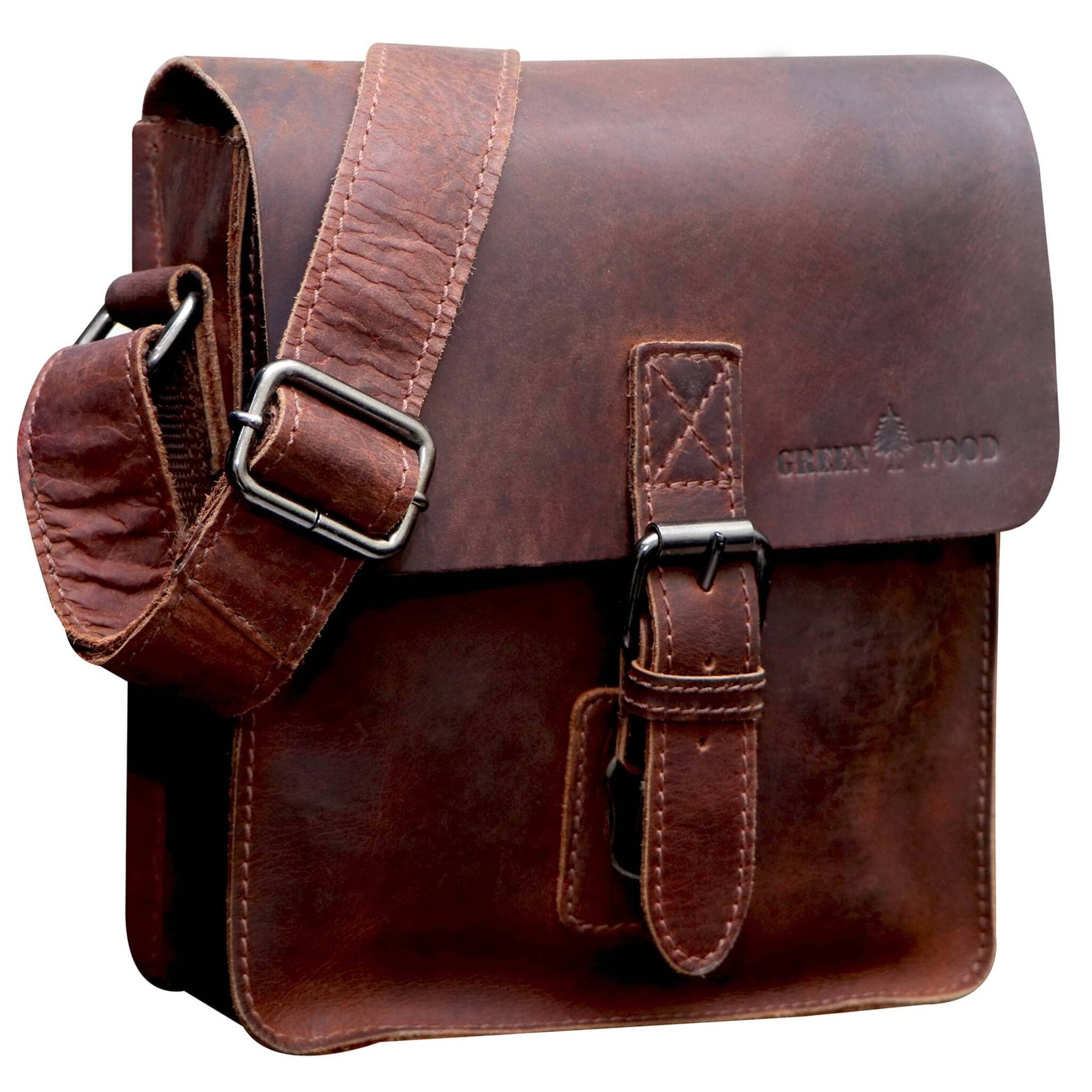 Materiaal: natuurlijk gewaxte, echte koeienhuid Afmetingen: ca. 23 cm breed, 18 cm hoog, 6 cm diep Gewicht: ca. 0,45 kg Greenwood Lea - kleine leren schoudertas voor dames, crossbody tas. Productdetails: - 1 ruime hoofdvak met ritssluiting - 1 ritsvak (14 x 12 cm) en 1 vak voor mobiele telefoon aan de binnenkant - 1 voorvak (22 x 14 cm) - 1 ritsvak (16 x 13 cm) aan de achterzijde - Brede verstelbare schouderband (2,5 cm), lengte van 60 tot 150 cm, gemaakt van leer en gevoerd met duurzaam nylon voor maximaal comfort - Geperst Greenwood-logo aan de buitenkant, label in het hoofdvak, heldere decoratieve stiksels, kleurgecoördineerde voering en soepele ritssluitingen Deze stijlvolle leren tas van Greenwood is de perfecte metgezel voor dagelijkse avonturen. De tas is gemaakt van zacht, duurzaam leer en heeft een ruim hoofdvak waarin je alles kwijt kunt wat je nodig hebt.