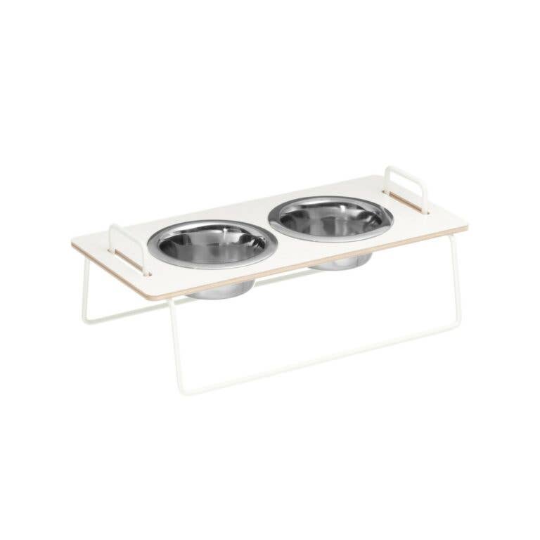 Stijlvolle komstandaard voor kleine honden en katten (hoogte minder dan 40 cm). Het product wordt geleverd met twee standaardstalen bekers van 0,37 l. Alle onderdelen zijn apart afneembaar. De hoogte van het frame is 11 cm. Huisdieren verouderen en worden soms zelfs ziek. Ongeacht de grootte van het huisdier is het vaak een goed idee om op een iets hoger niveau te eten. Degeneratieve veranderingen, irritatie van de wervelkolom of rug of reflux, onder andere, zijn redenen om een huisdier een hoger niveau voor eten en drinken te geven. Rassen die risico lopen op maagophoping kunnen ook verlichting krijgen van onze bekerhouder. Onze eenvoudige en tijdloze bekerhouders passen goed in verschillende huizen.