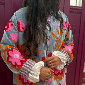 Jas met westers azteeks patroon knop omlaag, zijpakketten open voorkant,