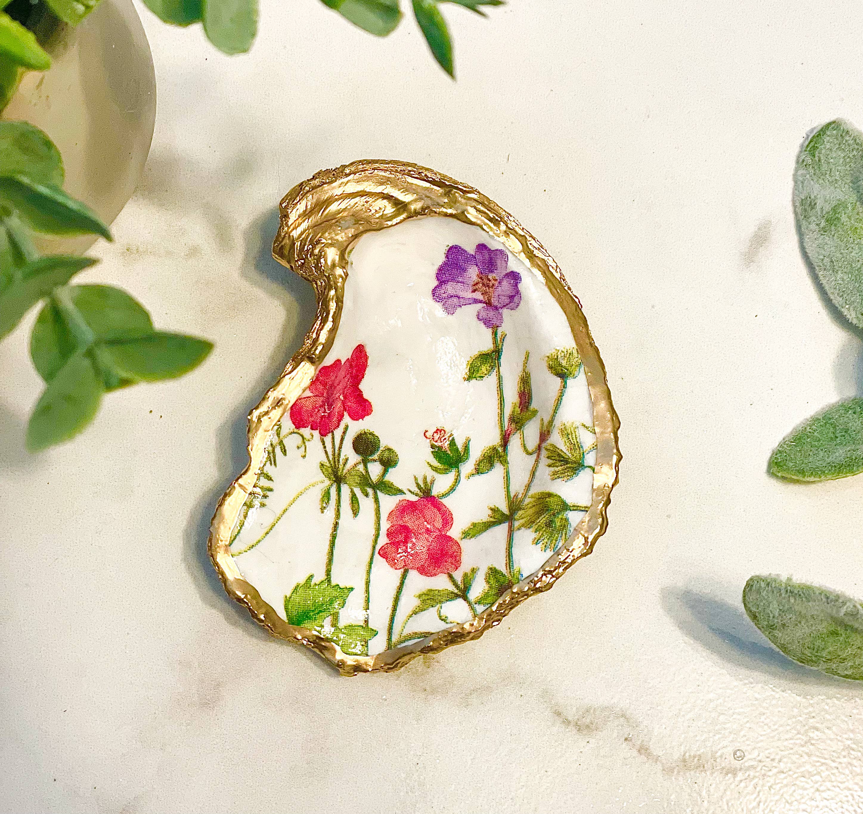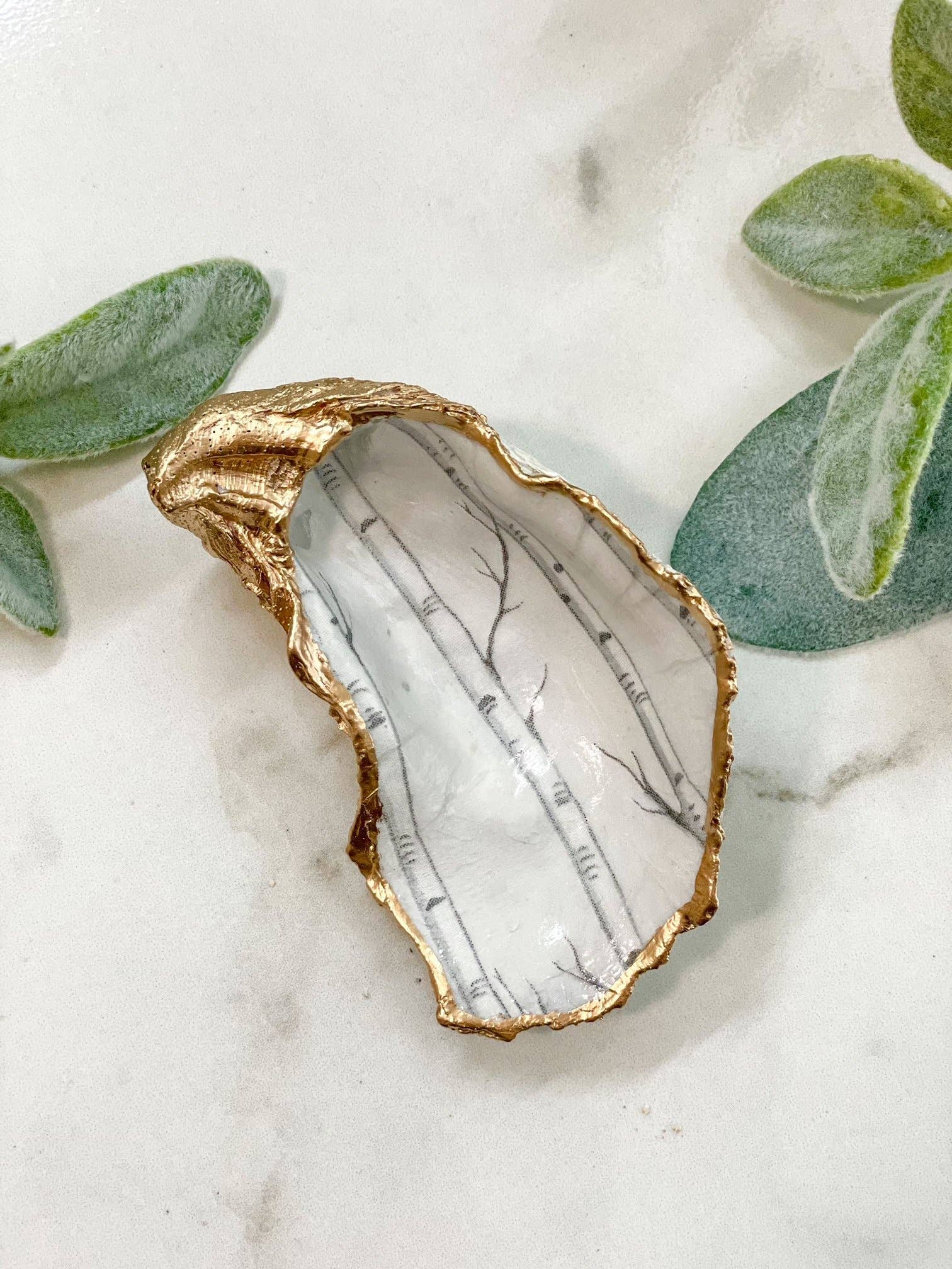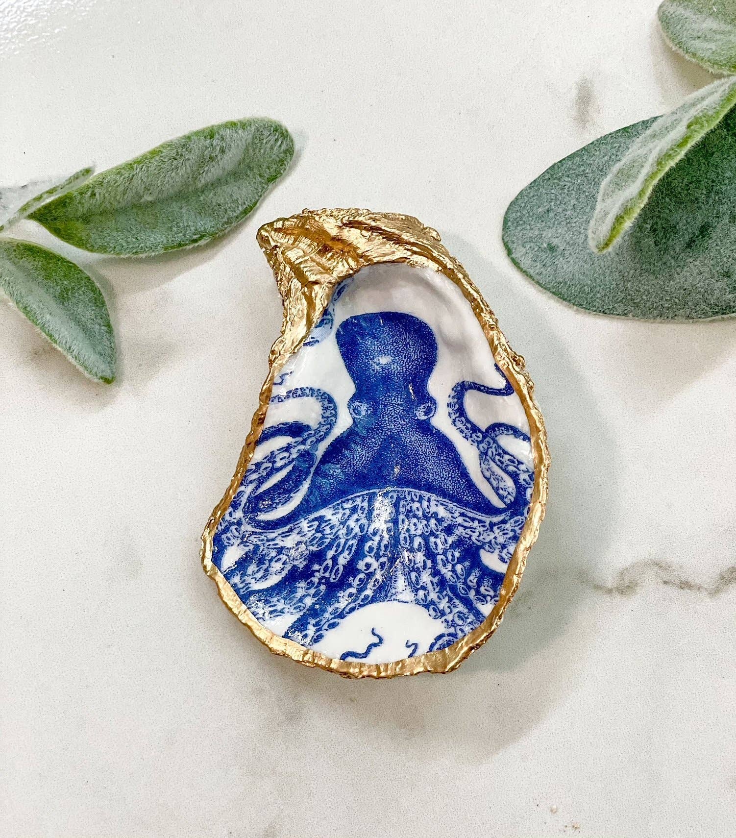 Deze oesterschelp van decoupage is het perfecte cadeau voor een gastvrouw, verjaardag, afstuderen, housewarming, bruidsmeisje, jubileum, feestdag of een souvenir om mee te nemen naar dierbaren van vakantie! Ze zijn perfect voor bij de wasbak of op je nachtkastje om je favoriete ringen, sieraden en snuisterijen in op te bergen, of om te gebruiken als accent voor thuis of op papier, waardoor je precies de juiste hoeveelheid kustflair aan elk huis toevoegt! Elke gerecyclede oesterschelp is met de hand beschilderd, ontdaan en afgewerkt met een geverfde bladgouden rand. De ruggen zijn natuurlijk gelaten om de natuurlijke schoonheid van de oester te behouden. De schelpen zijn ongeveer 3-4 cm lang. Omdat deze schelpen door de natuur zijn gemaakt, zullen ze variëren in vorm en grootte. Geen twee zijn hetzelfde! Bij elke oester zullen er kleine verschillen zijn in de opdruk. Met zorg handgemaakt in de kust van Maine.