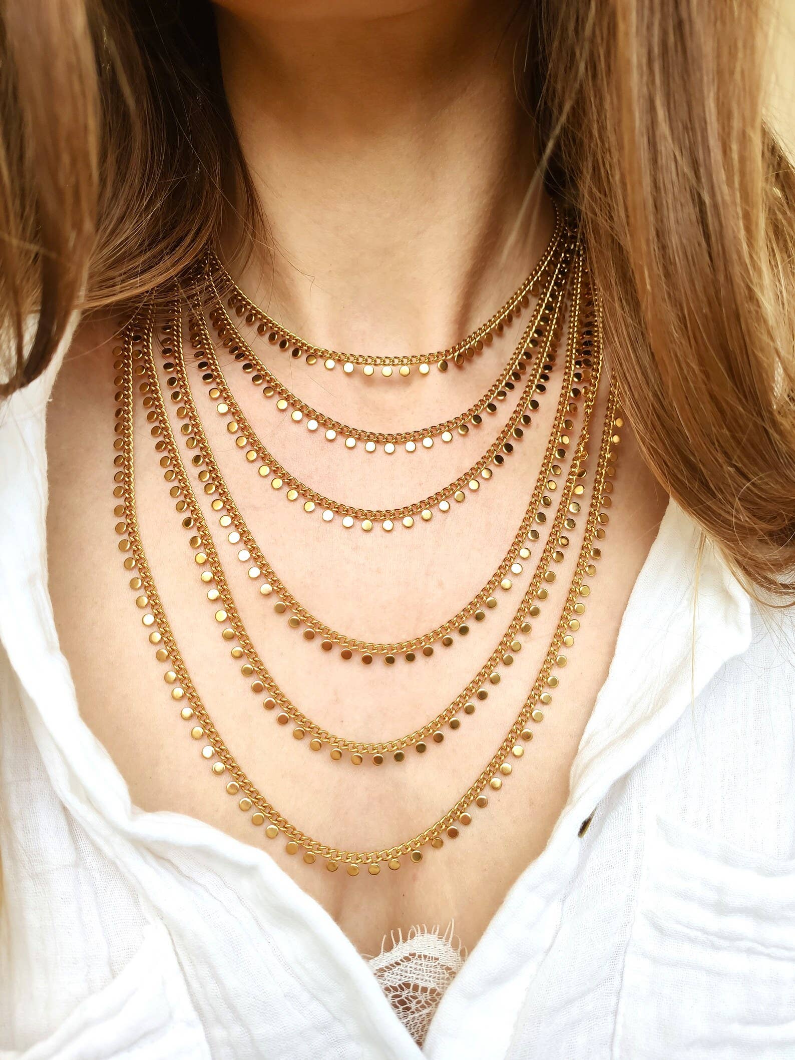 ✨ De HESTIA-ketting is het perfecte sieraad om een vleugje licht toe te voegen aan je outfits, zowel in de zomer als in de winter. Met zijn fijne en glanzende ketting en zijn facetgeslepen hanger in de vorm van een waterdruppel, verfraait hij je hals op een goddelijke manier. 😍 Alleen te dragen of in combinatie, hij zal je zeker verleiden. 🫶🏻 Hij is met liefde met de hand gemaakt in mijn kleine atelier tussen velden en bossen.🌿 🔎 INFO: Lengte: 40 cm + verlengketting 5 cm. Gewicht: Ongeveer 2 g. Ketting, sluiting en verlengketting van verguld roestvrij staal. Hanger van verguld messing en echte edelsteen. 💎 ONDERHOUDSTIPS: Om de schoonheid van je sieraad te behouden en de levensduur te verlengen, wordt aangeraden om elk contact met water, dampen, parfums of crèmes te vermijden en het af te doen tijdens fysieke activiteiten. Het wordt aangeraden om het op te bergen in een zakje of een sieradendoosje wanneer je het niet draagt.