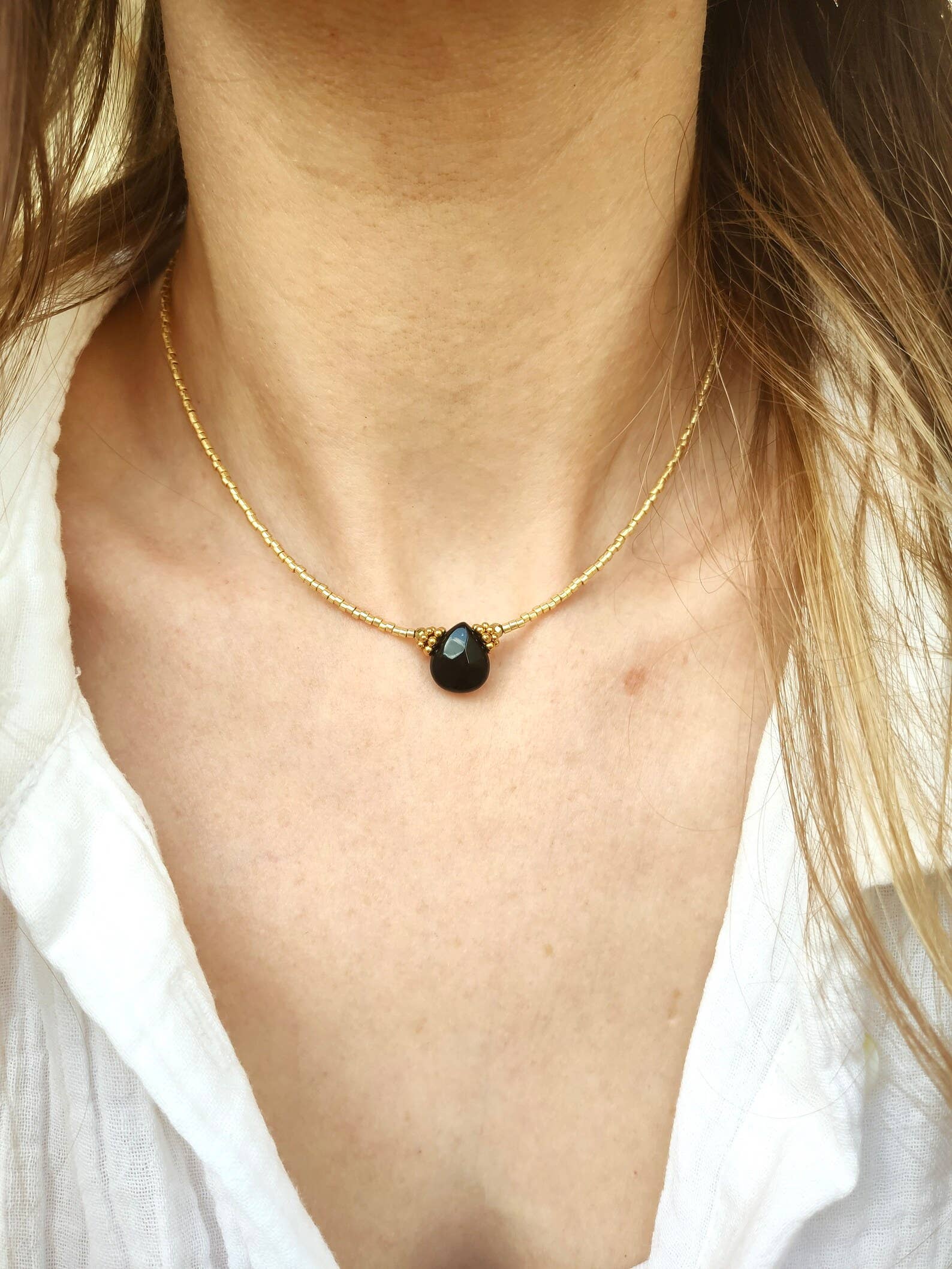 OLYMPE halsketting - zwarte agaat