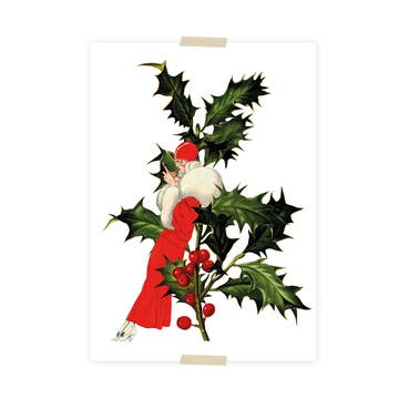 Handgetekend enkel kerstkaartje van 10,5 x 14,8 cm met een camper die onderweg is met een kerstboom op z'n dak. Met op de achterkant voldoende ruimte om te schrijven.