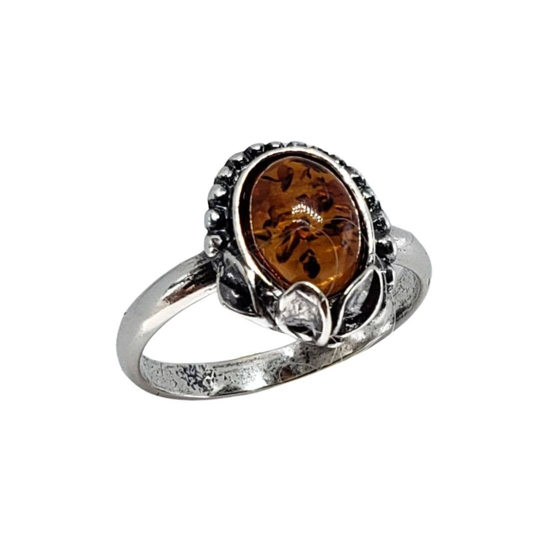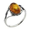 De ovaalvormige ambersteen is gezet in .925 sterling zilver. Echte Baltische barnsteenring.