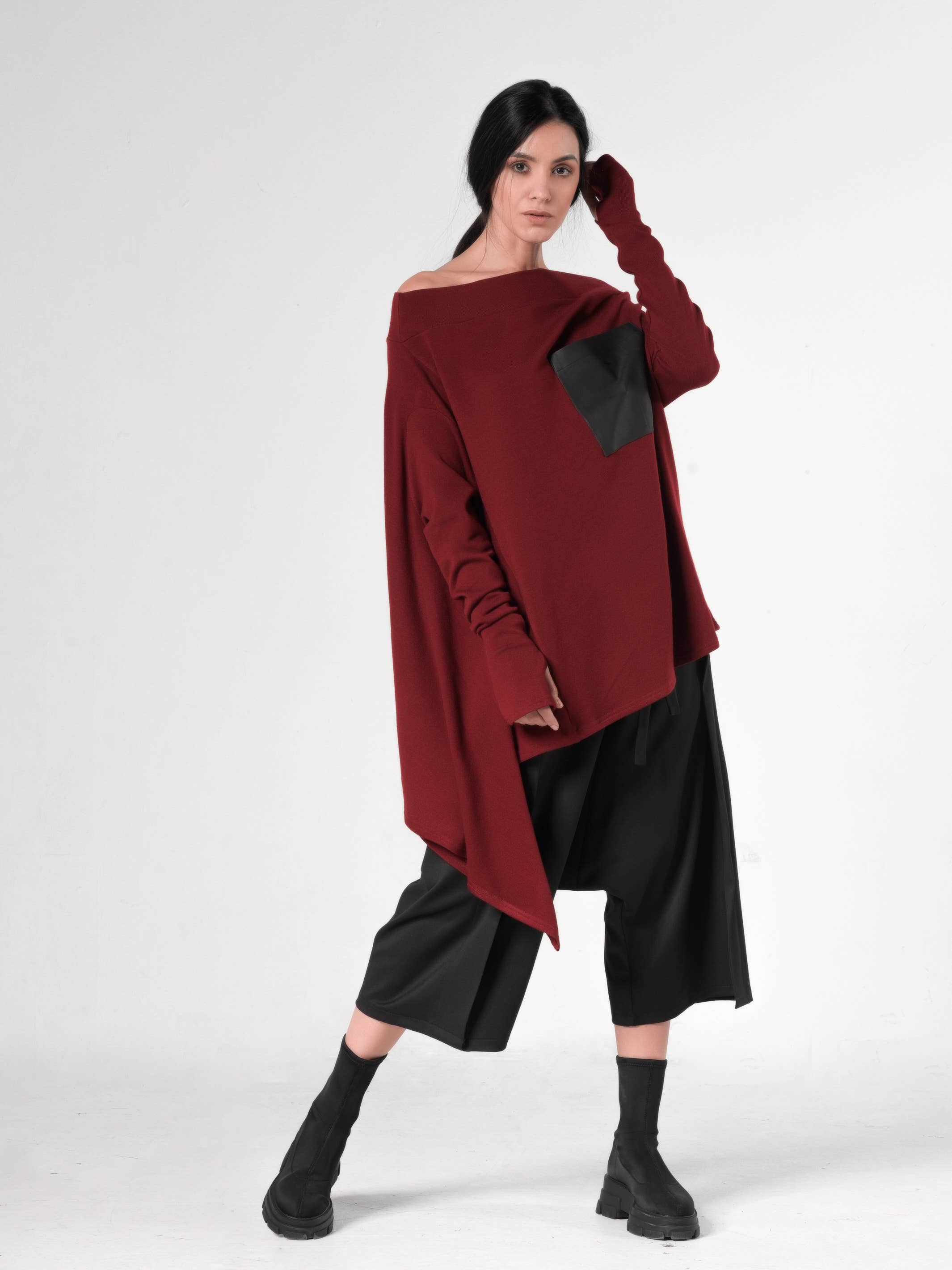 SKU: METT0120 Gemaakt in Bulgarije Gelegenheid: Voor elke dag Halslijn: Eén schouder Mouwlengte: Lange mouw Pasvorm: Modern Seizoen: Herfst/winter Stof: Zware geribbelde jersey - 100% katoen (400 g/m²)