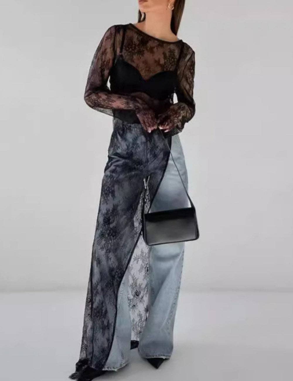 V-hals kanten onregelmatige lange jurk DP25A521