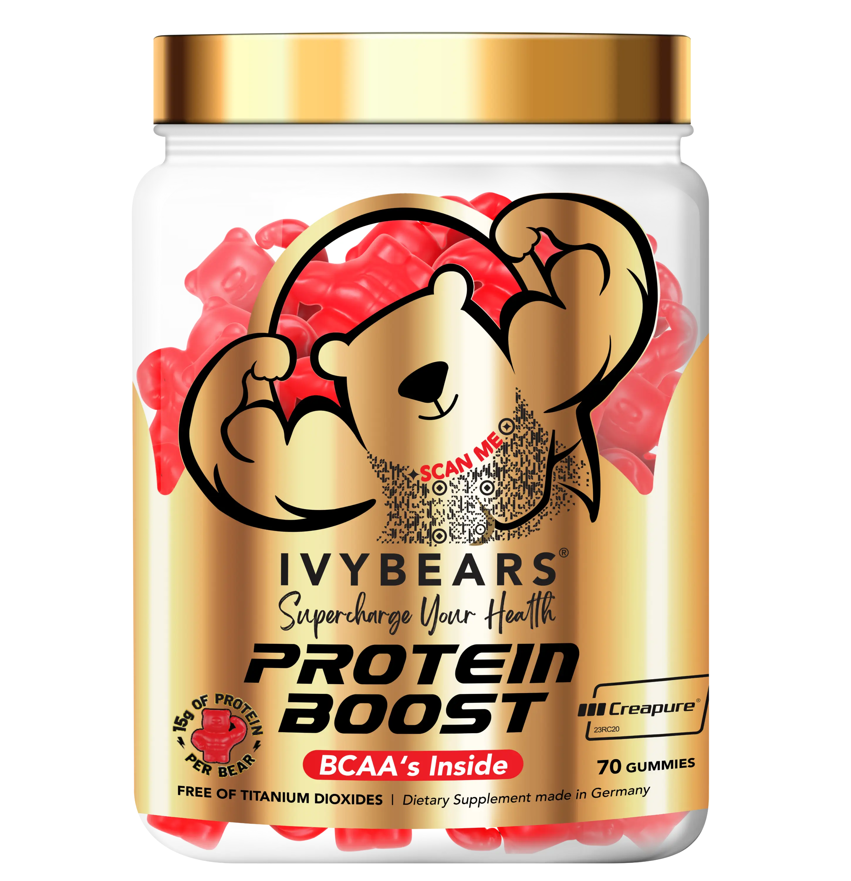 Geeft de huid een ultieme glow! IvyBears zijn vitaminegummy’s in de vorm van schattige beertjes die ook nog eens heerlijk smaken. 𝗜𝗩𝗬𝗕𝗘𝗔𝗥𝗦® VIBRANT SKIN bevat de perfecte combinatie van collageen, hyaluronzuur en riboflavine. Collageen en hyaluronzuur zijn essentiële onderdelen van onze huid die na verloop van tijd verminderen. IvyBears Vibrant Skin levert deze waardevolle stoffen in een bijzonder hoogwaardige vorm die het lichaam gemakkelijk opneemt. We vullen dit aan met riboflavine, ook bekend als vitamine B2, die een gezonde huid en slijmvliezen ondersteunt.