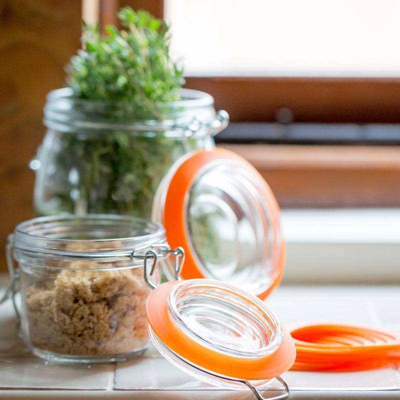 Hoewel het alleen maar jampotten zijn, zijn ze echt zo mooi en helder in het glas. De luxe dat er ook meerdere kleuren afdichtringen bij elke pot zitten, elk verpakt in een eigen doos. Zo leuk om in de winkel te kunnen uitstallen.