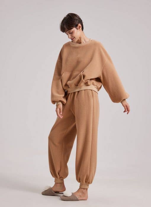 T: Tijdloos, gezellig en veelzijdig: deze trui is gemaakt van gemengde wol en kasjmier. Met een klassiek ribgebreid ontwerp, split aan de zijkant en mouwen versierd roktype ontwerp met de knoop P: Comfortabel en ontspannen, deze broek brengt een klassieke esthetiek in je vrije tijd. Het is gemaakt van gemengde wol en kasjmier, heeft een elastische taille, steekzakken en ribgebreid ontwerp.
