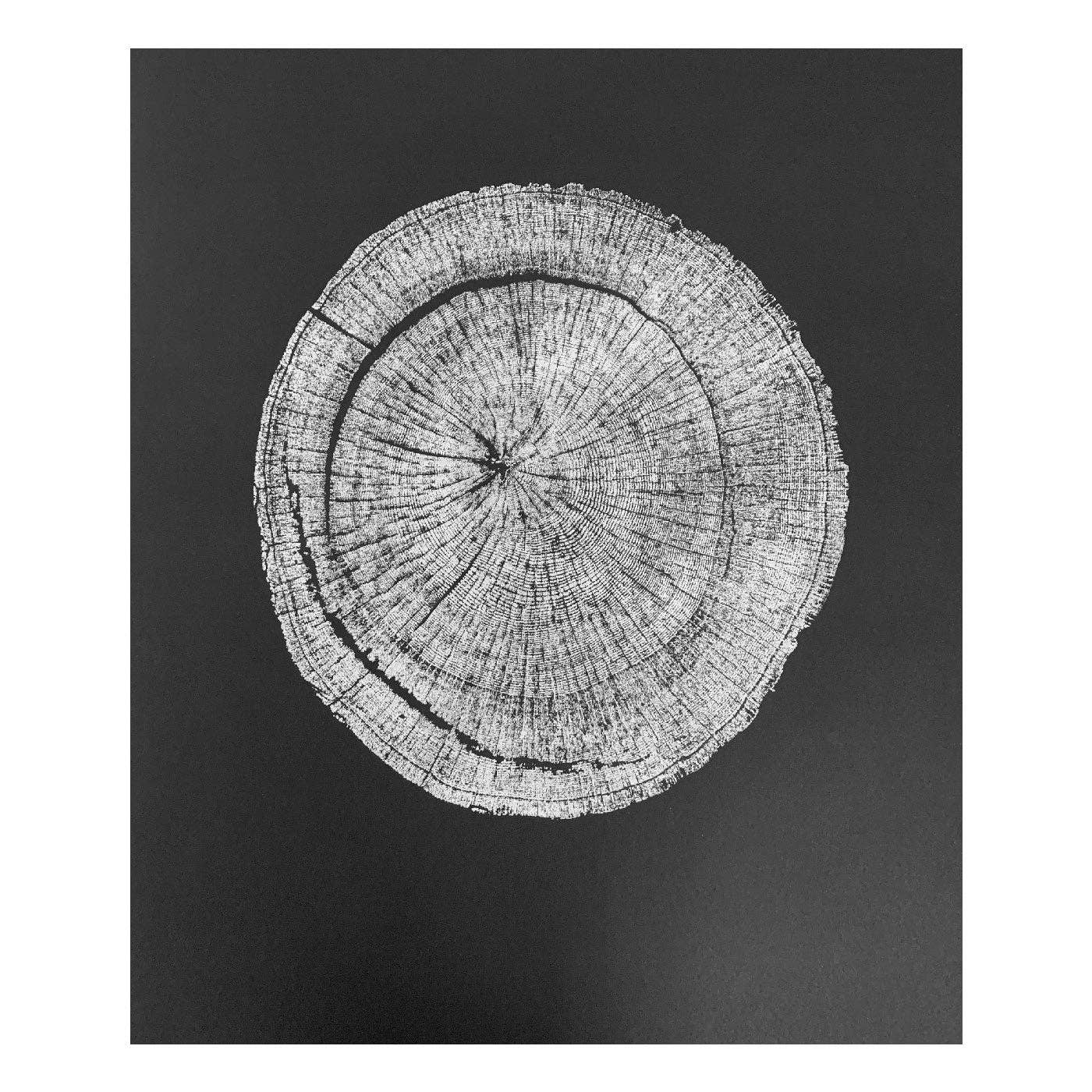 Dit is een beperkte oplage van #41 handgetrokken houtsnede reliëfdrukken direct van een deel van een omgevallen Zilverwilg. Deze afdrukken zijn handgetrokken wrijvingen en zullen lichte variaties vertonen. Elk exemplaar wordt aan de voorkant gesigneerd en genummerd, en aan de achterkant gesigneerd en gedateerd. Verzending: Deze afdruk wordt opgerold in een koker geleverd - samen met andere afdrukken. + Handgetrokken reliëfdruk + Beperkte oplage van 41 + Boomleeftijd: 41 + Witte afdruk op zwart papier + Papierformaat: 18" x 24" + Afdrukformaat: 15" x 15" + Papier: Zwaar French Paper Co. papier