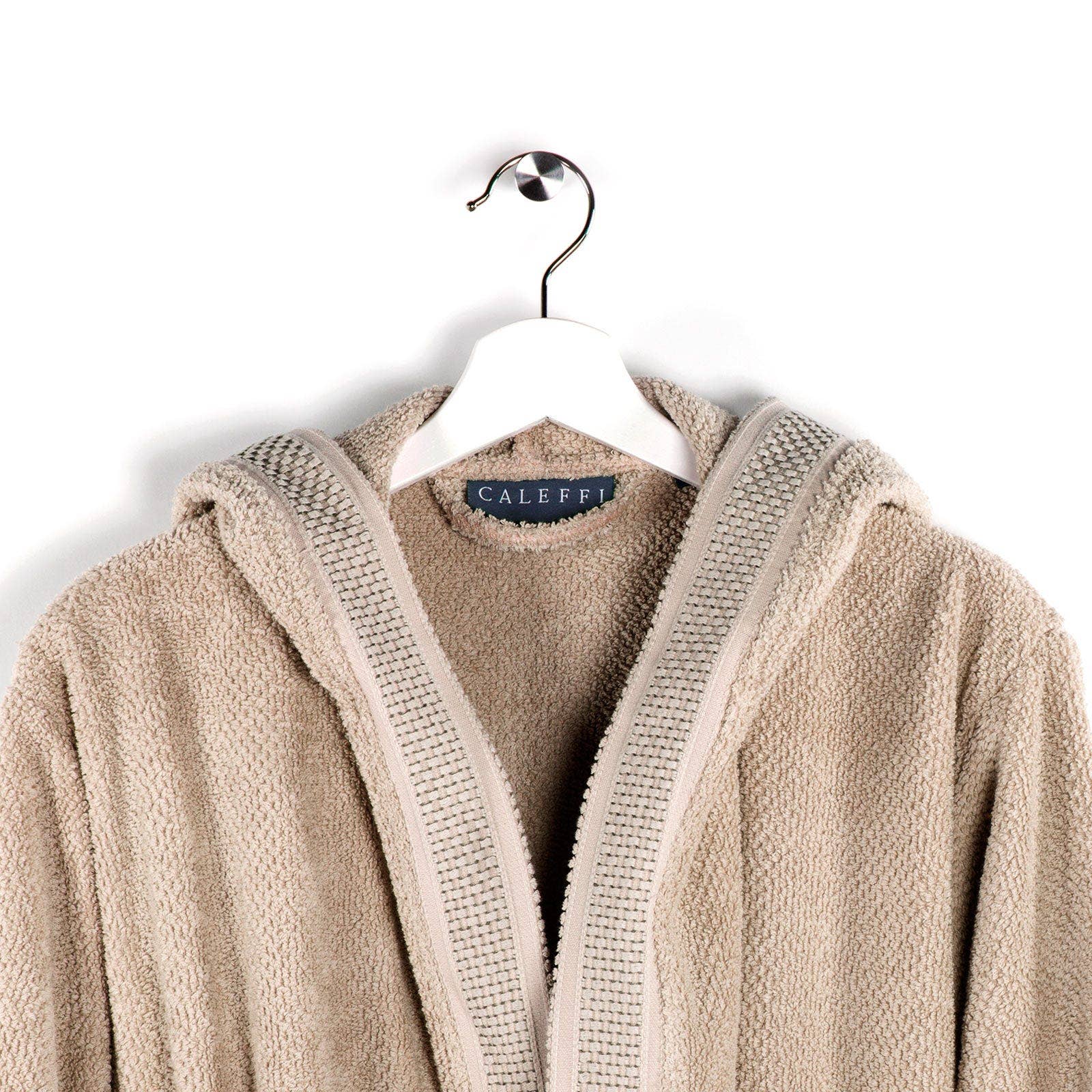 De designer kamerjas van Mozart voor heren blijft een bestseller - gedurfde, harmonieuze veelkleurige strepen tegen een glanzende zwarte velours achtergrond. Deze hoogwaardige badjas is voorzien van onze kenmerkende halve sjaalkraag voor optimale warmte en comfort en wordt geleverd met een bijpassende strikriem. Er zijn twee taillelushoogtes zodat je je jurk kunt afstemmen op de perfecte pasvorm en de opvouwbare manchetten zorgen ervoor dat je ook de gewenste mouwlengte past. Een eigentijdse kijk op de klassieke badjas voor stijlvol loungen thuis. 100% Egyptisch katoen, 400 g/m2