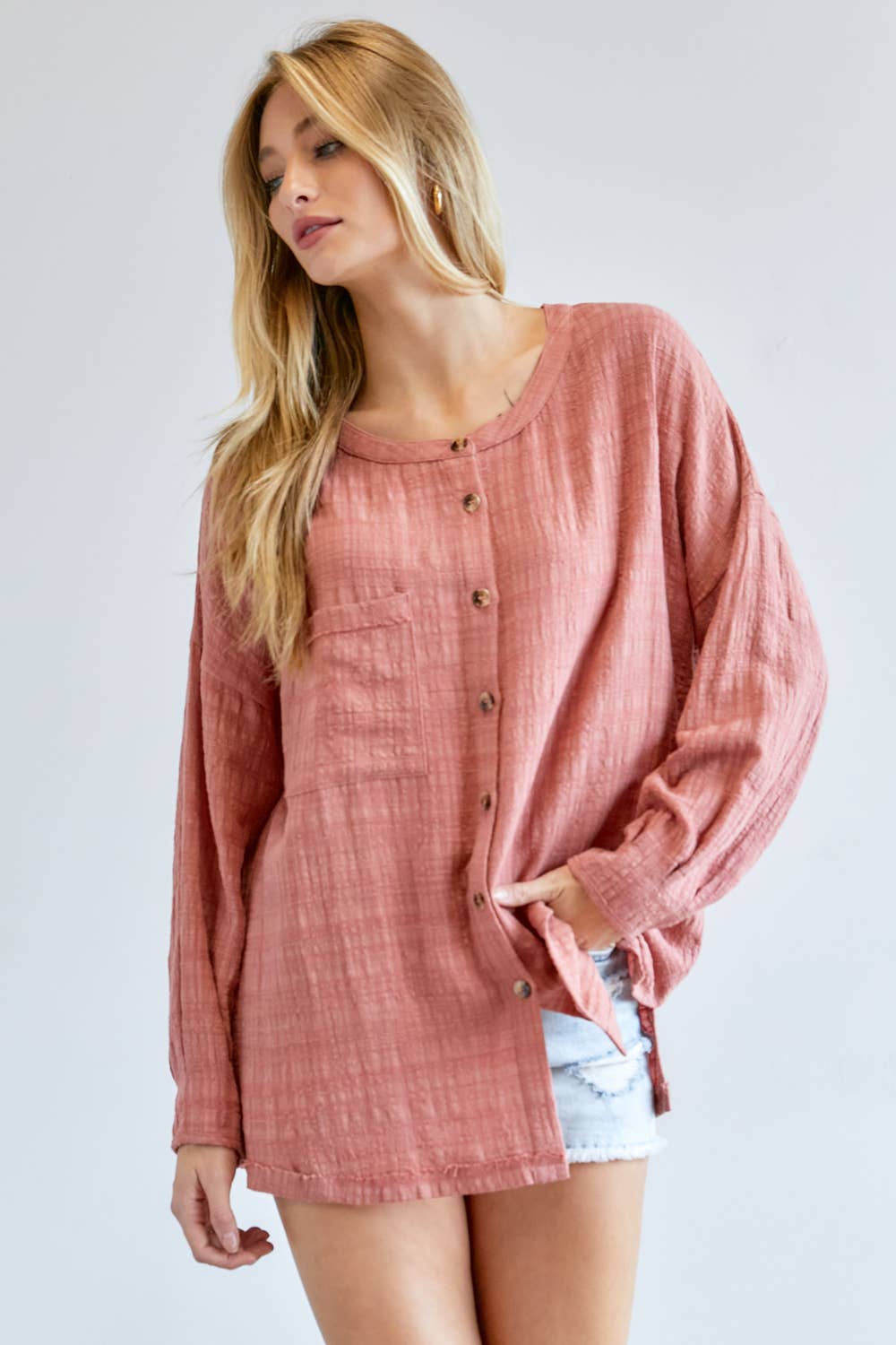 Een moderne kijk op casual comfort, deze half-zip pullover met trekkoord heeft een verstelbare zoom, brede manchetten en een ontspannen pasvorm voor moeiteloos laagjes. Het is een veelzijdig basisstuk voor boetiekkopers die op zoek zijn naar verfijnde loungewear die naadloos overgaat van ontspannen dagen naar street-chic styling. Model draagt maat Small Lengte: 5'9" Borst: 32B Taille: 24" Heupen: 34"