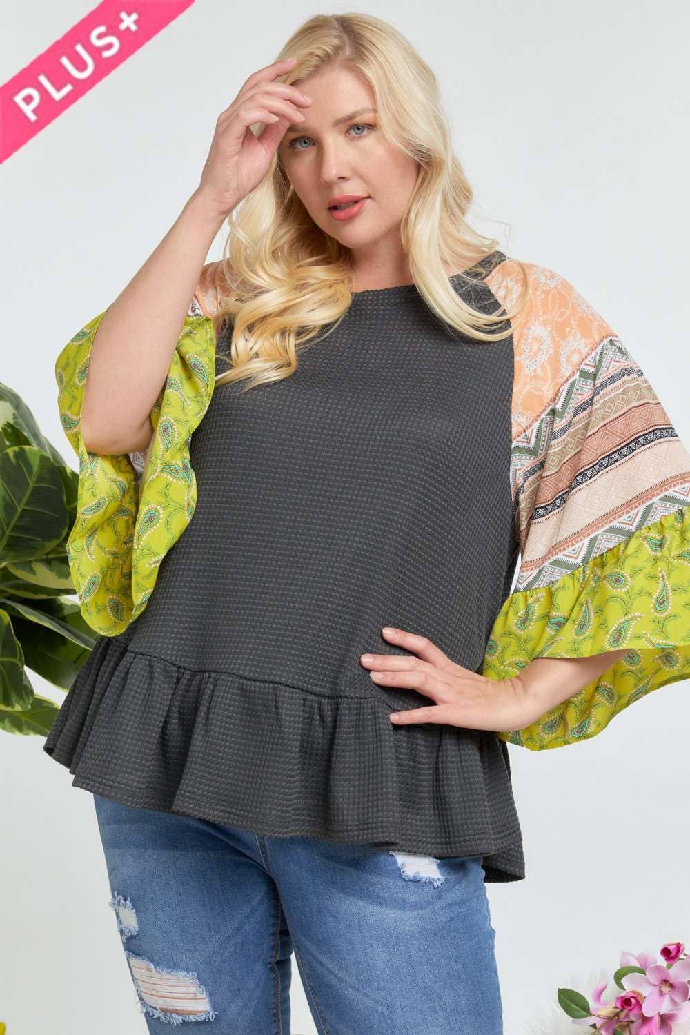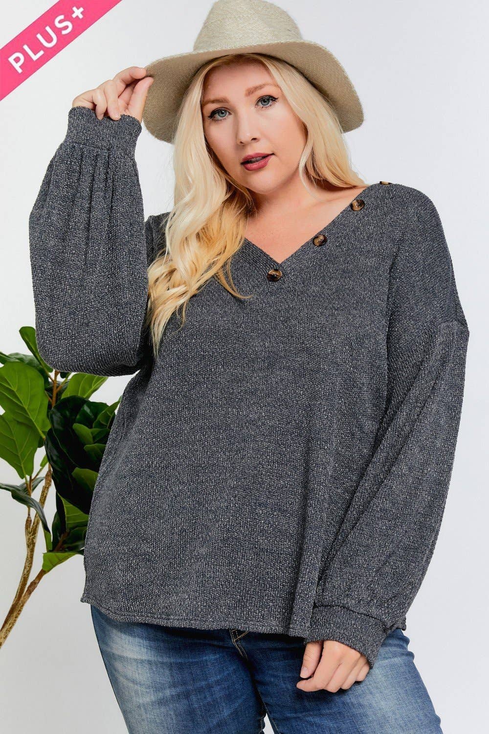 PLUS TOP MET RUCHES MET RONDE HALS