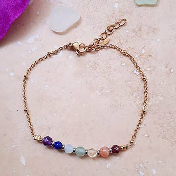 HET ZIT HEM IN DE DETAILS ACCENT: Karabijnsluiting (Meer informatie over 18K goud ion-geplateerd roestvrij staal) STIJL: Verstelbaar MATERIAAL: Labradoriet HYPOALLERGEEN: Ja (Geschikt voor gevoelige huid) MAAT: 15,88 - 22,23 cm omtrek SIERADENONDERHOUD: Meer informatie