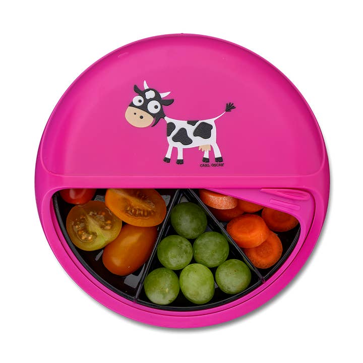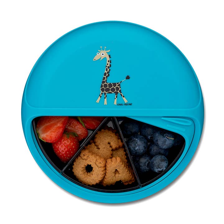 Draai aan je snackmaaltijd! SnackDISC is een betere manier om gezonde snacks te bewaren – zo hergebruik je, verminder je afval en bespaar je! Pak een afvalvrije snackmaaltijd in met bessen, noten of andere droge voeding. Het bespaart ruimte, houdt de snacks vers en voorkomt dat ze worden platgedrukt. Draai eenvoudig aan de schijf en verander de maaltijd in een smakelijk avontuur voor jou en je kind. Onmisbaar voor kinderopvang, school, excursies, autoritten, boodschappen doen met de kinderen of voor een picknick. Het heeft vijf draaibare compartimenten en de voedselplaat kan gemakkelijk worden verwijderd en op het picknickkleed of de tafel worden geplaatst. Vaatwasmachinebestendig (maximaal 60 graden). Uniek gepatenteerd ontwerp van Carl Oscar® uit Zweden.
