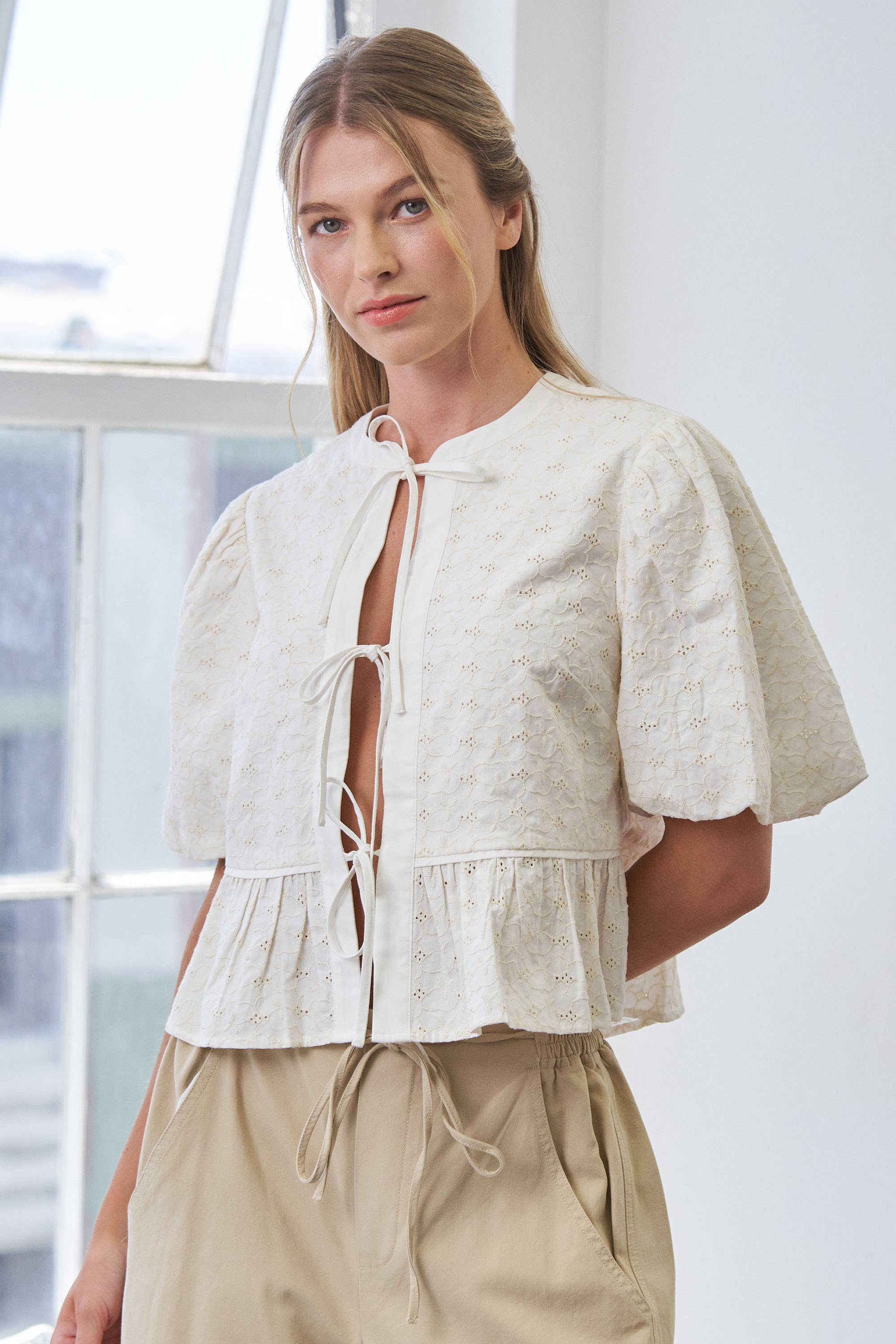 Ivoren gebreide vesten met driekwart mouwen