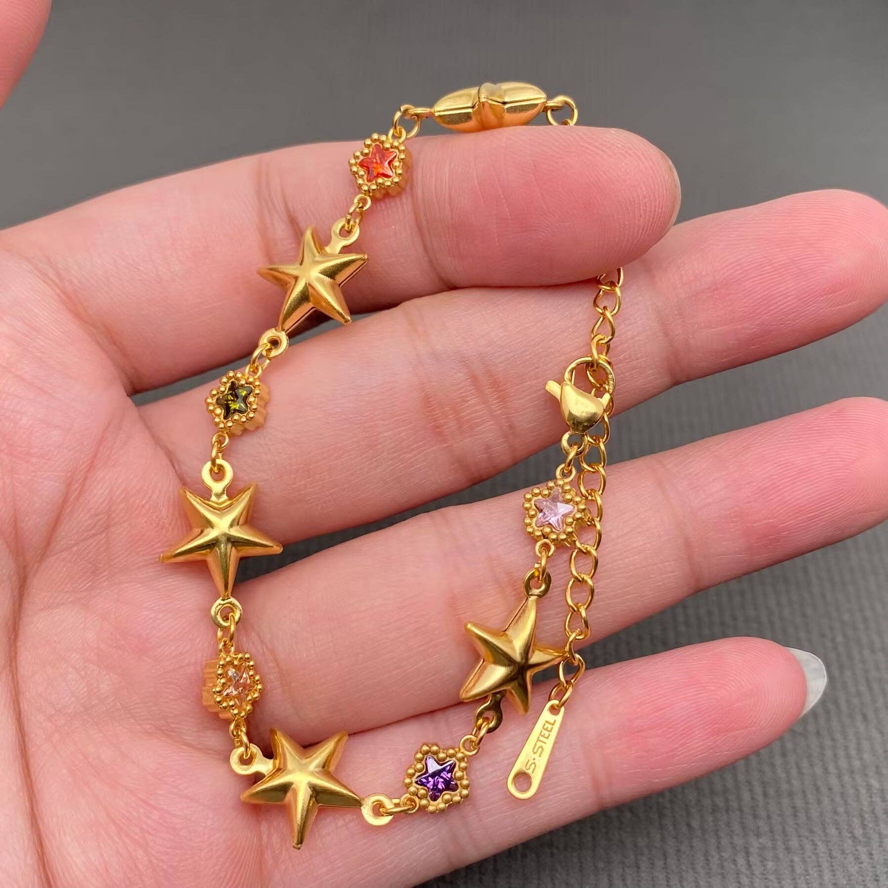 Type: Armband Materiaal: 316L roestvrij staal, Cubic zirconia, 18K goud verguld Breedte - 6,8 mm Lengte: 155 mm + 50 mm Proces: vacuüm elektroplating en handmatig polijsten, niet aanslaand Oppervlak: Hoogglans ★Gemaakt van hoogwaardig roestvrij staal, loodvrij, onschadelijk voor het menselijk lichaam. ★Perfecte sieradengeschenken