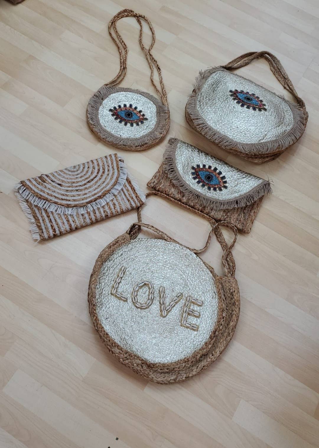 Clutch met kralen als een kunstwerk Magnetische kliksluiting met ritsvak. zie er fris, chique en verfijnd uit met de hand gemaakt verpakking van 2 Boho-tassen, geweldig voor de zomer