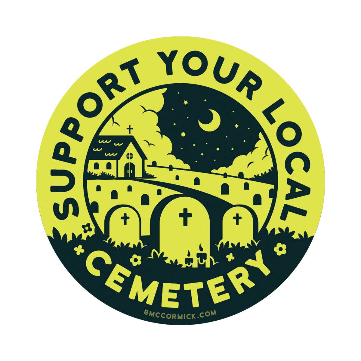 Steun je lokale begraafplaats 3" sticker | Zwart en wit