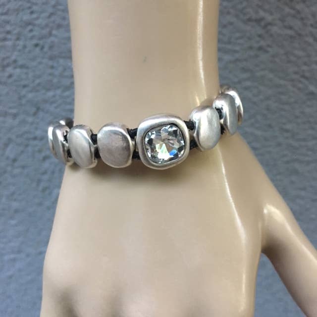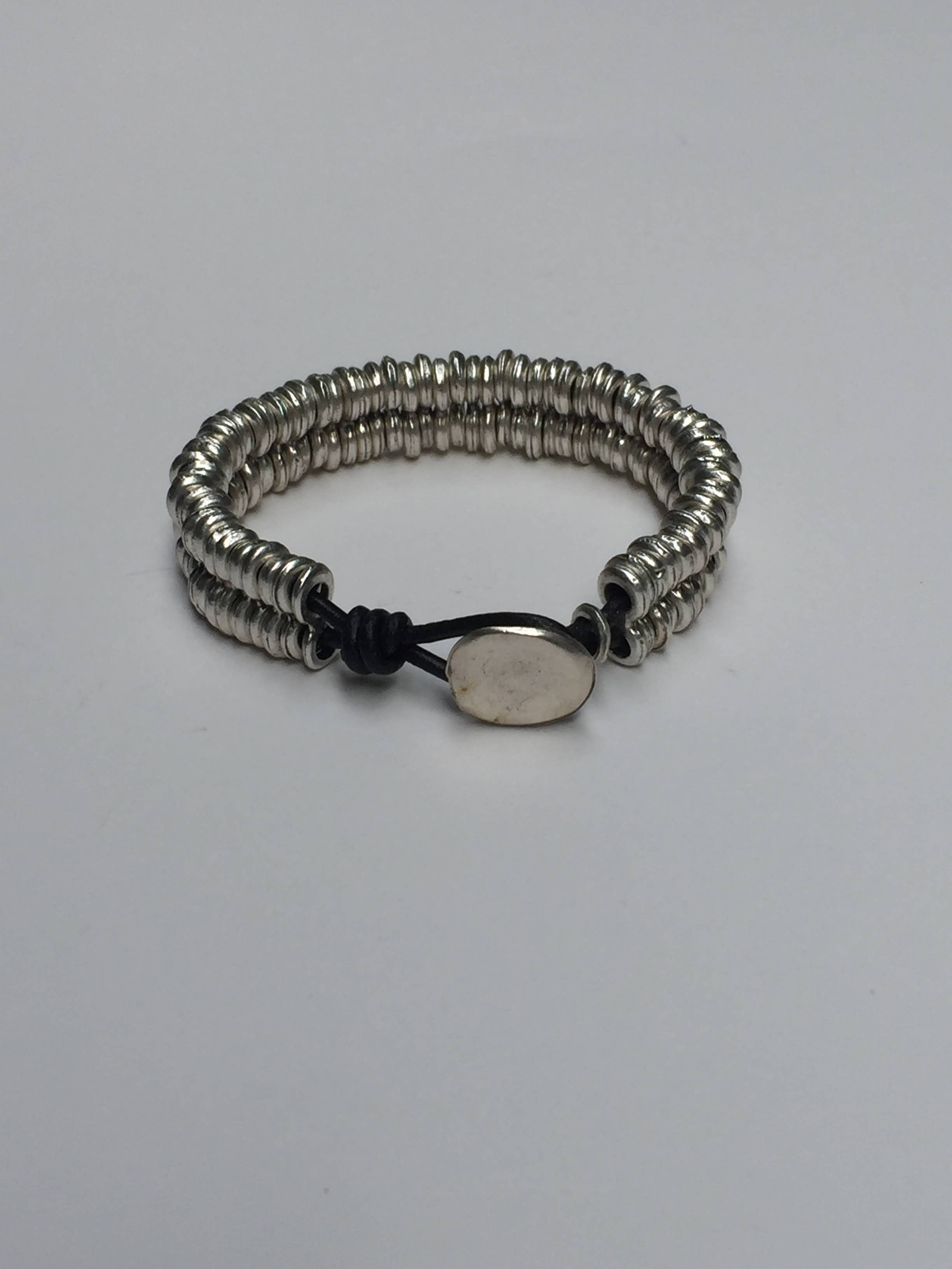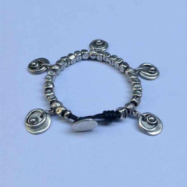 1961 echt leren uniseks zilver verguld armband