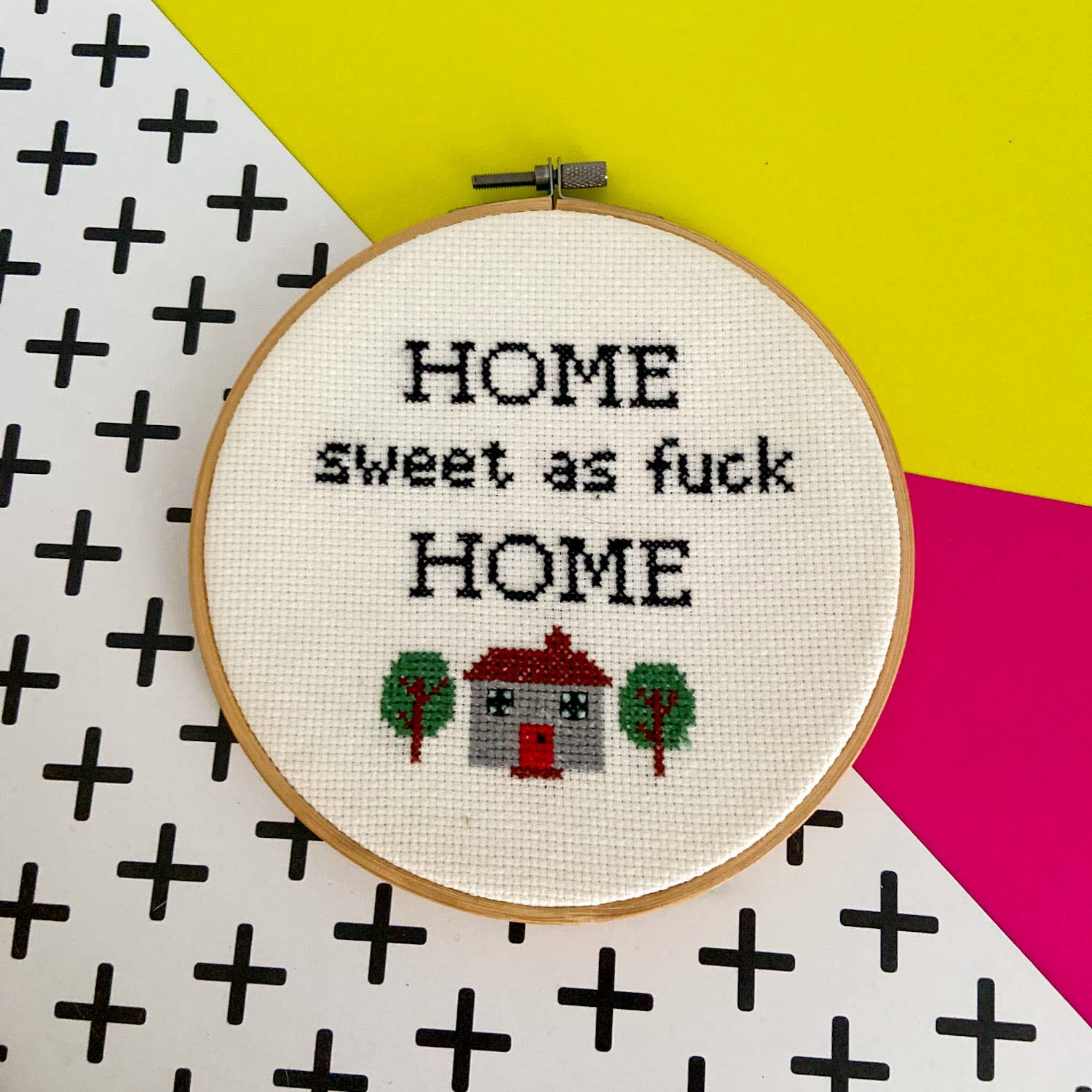 INHOUD VAN DE KIT: Borduurraam van bamboe van 6 inch Witte kruissteekstof (aida van 14 stuks) Vooraf gemeten DMC-borduurgaren 3 x naalden Grafiek/patroon in kleur gedrukt Stapsgewijze, geïllustreerde instructies ONTWERPSPECIFICATIES: Ontwerpgebied: 5,1 x 5 inch (met Aida-stof van 14 tellen) Steken: 72 x 71 Kleuren: 2 Steken: volledige kruissteken