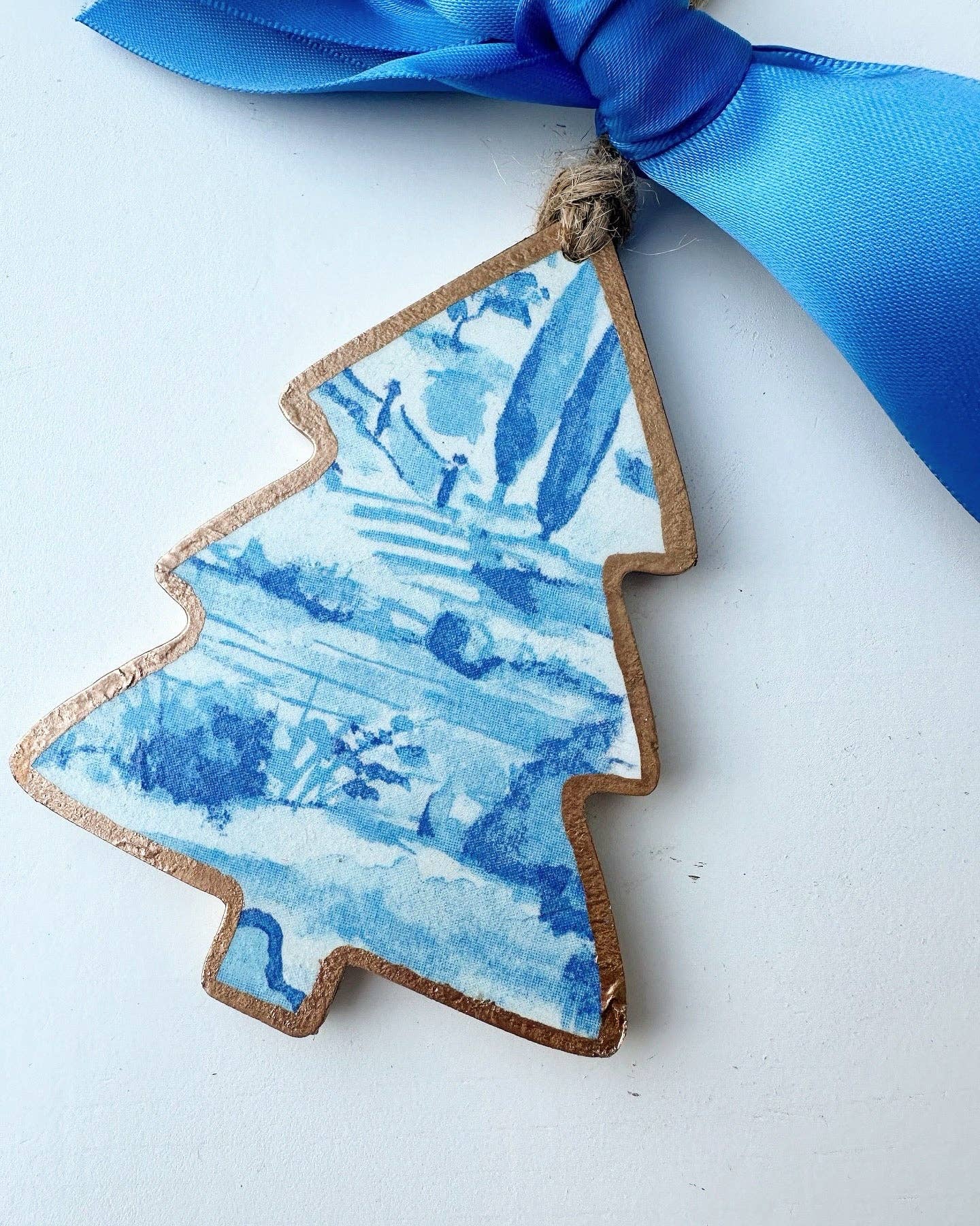 Deze handgemaakte ornamenten zijn zorgvuldig met de hand ontkoppeld en beschilderd en afgewerkt met een satijnen strik. De randen zijn geverfd in een hoogwaardige goudverf en alle ornamenten zijn verzegeld ter bescherming.