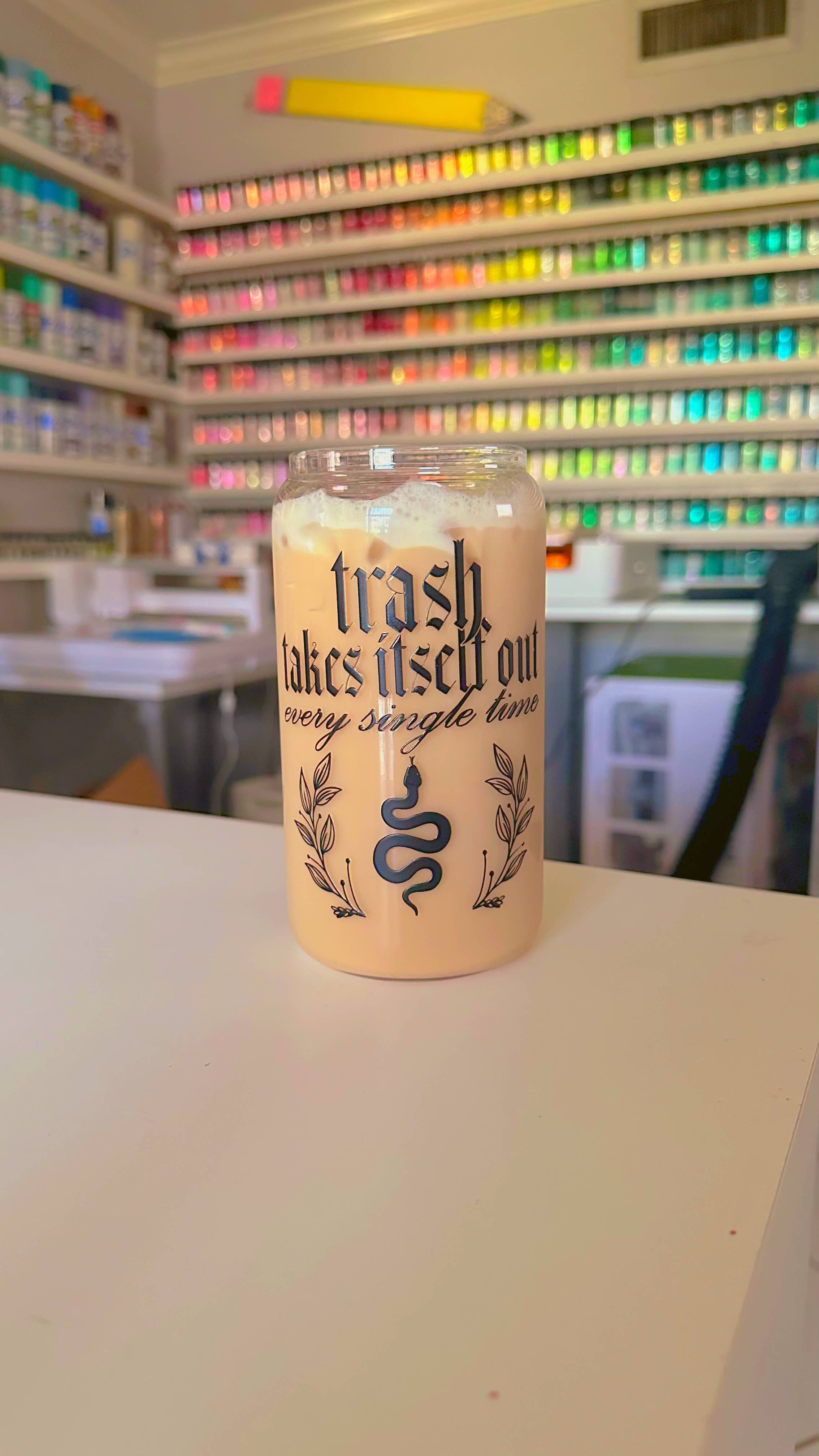 De ultieme aanvulling op elke Swifties-collectie. Dit op Taylor Swift geïnspireerde glazen blikje is perfect om's ochtends van ijskoffie of je favoriete drankje te genieten. Geïnspireerd door Taylor Swifts Eras Tour. Deze aanbieding is alleen voor het glas, het deksel en de rietjes worden apart verkocht. Dit koffieglas maakt zeker een statement! Alleen met de hand wassen Niet vaatwasmachinebestendig