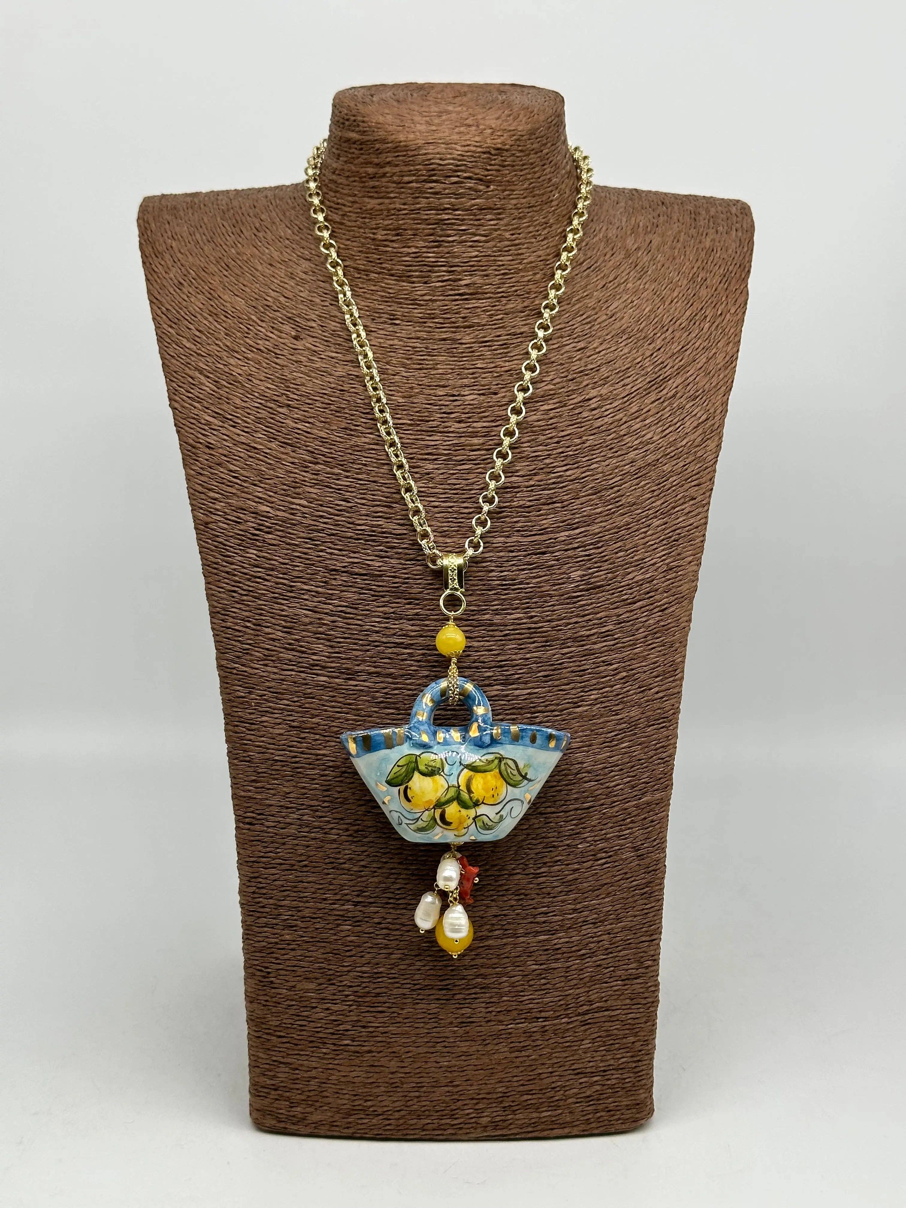 Overzicht • Halsketting gemaakt in Sicilië met geglazuurde lavastentegel, Pala Fichi d'India-decoratie, wit frame • Lengte van de hanger (cm): 7 • Afmetingen van de plaat (cm): 2x2 • Kleine natuurlijke parelketting • 100% handgemaakt Elke creatie is gemaakt met passie voor de techniek, na zorgvuldig en nauwgezet materiaalonderzoek. Het eindresultaat is een absoluut uniek handgemaakt product van Made in Sicily, een modieus accessoire dat uw kleding de laatste hand zal leggen.