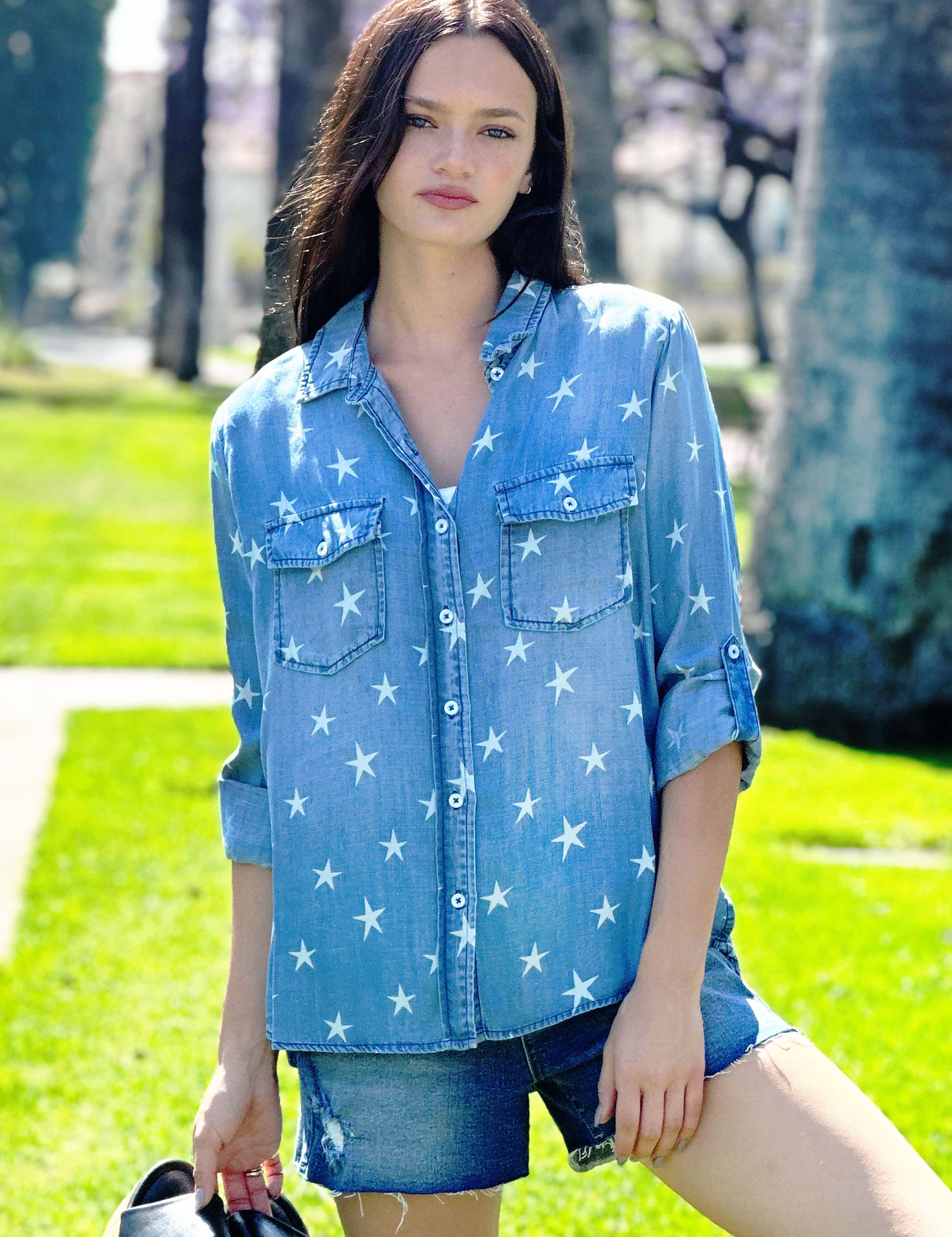 Blauw wit overhemd met sterren