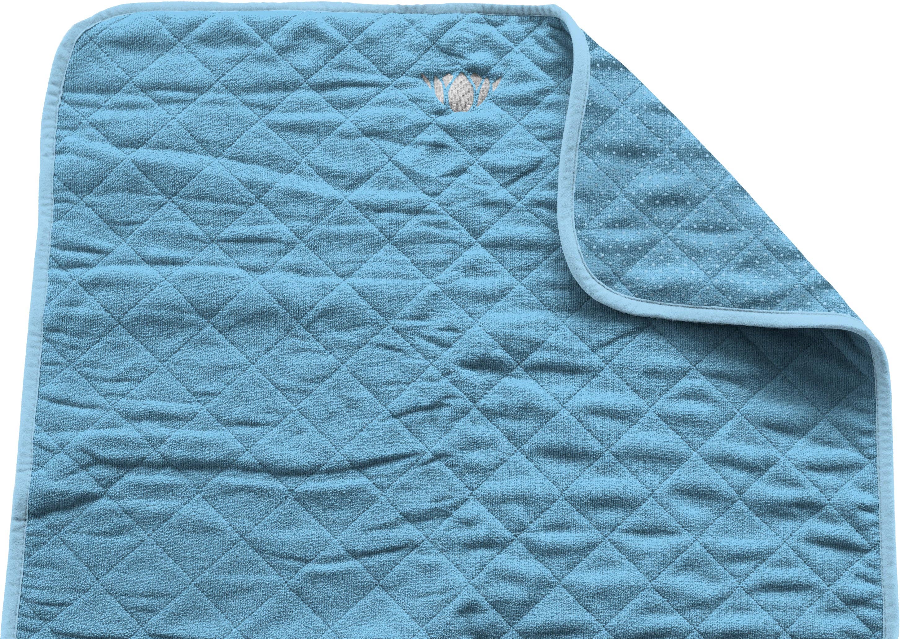 WayMat Soothing Sea-triple Stitch Beperkte editie. Beperkte hoeveelheden. GLOEDNIEUW. We hebben enkele verbeteringen aangebracht. Je zult ze geweldig vinden. NIEUW! Kleinere drielaagse diamantstiksels zorgen ervoor dat de mat nog platter ligt! Zachtere, milieuvriendelijke PVC-noppen aan de onderkant van de mat. Minder slip, meer grip! Alle matten worden geleverd met een riem! Extra bonus: berg je mat op in de meegeleverde WayBag-rugzak met trekkoord! Meer dan een mat. WayMat is een ALLES-IN-ÉÉN handdoekmat + grip. Laat je rubberen mat en handdoek thuis, WIJ zorgen ervoor dat je van top tot teen bedekt bent. Letterlijk. Als je thuiskomt, gooi het dan in de wasmachine en droger en ga op weg! Afmetingen: 75 „x 30" 3” langer en breder dan de GROOTSTE mat van standaardformaat!