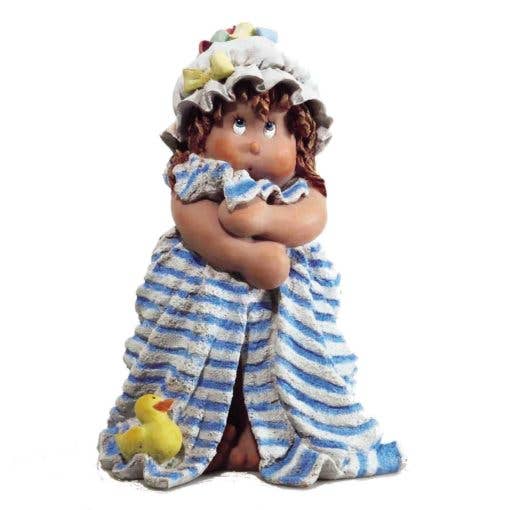 Volledig met de hand gebreide wollen pop die een baby voorstelt met zijn muts en pakje versierd met kleine roze strikjes en zijn fopspeen! Uniek model. Hoogte: 33 cm. ANGE