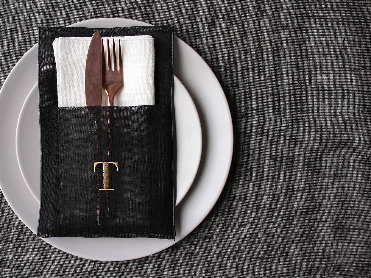 Alle prijzen zijn exclusief btw. MINIMALE BESTELLING: 6 stuks - gemengde initialen Om de INITIALEN en de kleur van het BORDUURSEL in te voeren, selecteert u eerst het veld „Aanpassen” en schrijft u vervolgens in het daarvoor bestemde vak dat wordt geopend. Blader door de afbeeldingen om de kleurenkaart te bekijken! Servethouder van linnengaas met trekkoord in kleur en geborduurd initiaal in vetgedrukt lettertype, in een kleur naar keuze. Formaat: 12x22cm Samenstelling: 100% linnen Wasvoorschriften: Machinewasbaar op 30° Op de foto: Alle kleurvarianten zijn gefotografeerd met BRONZEN borduurwerk