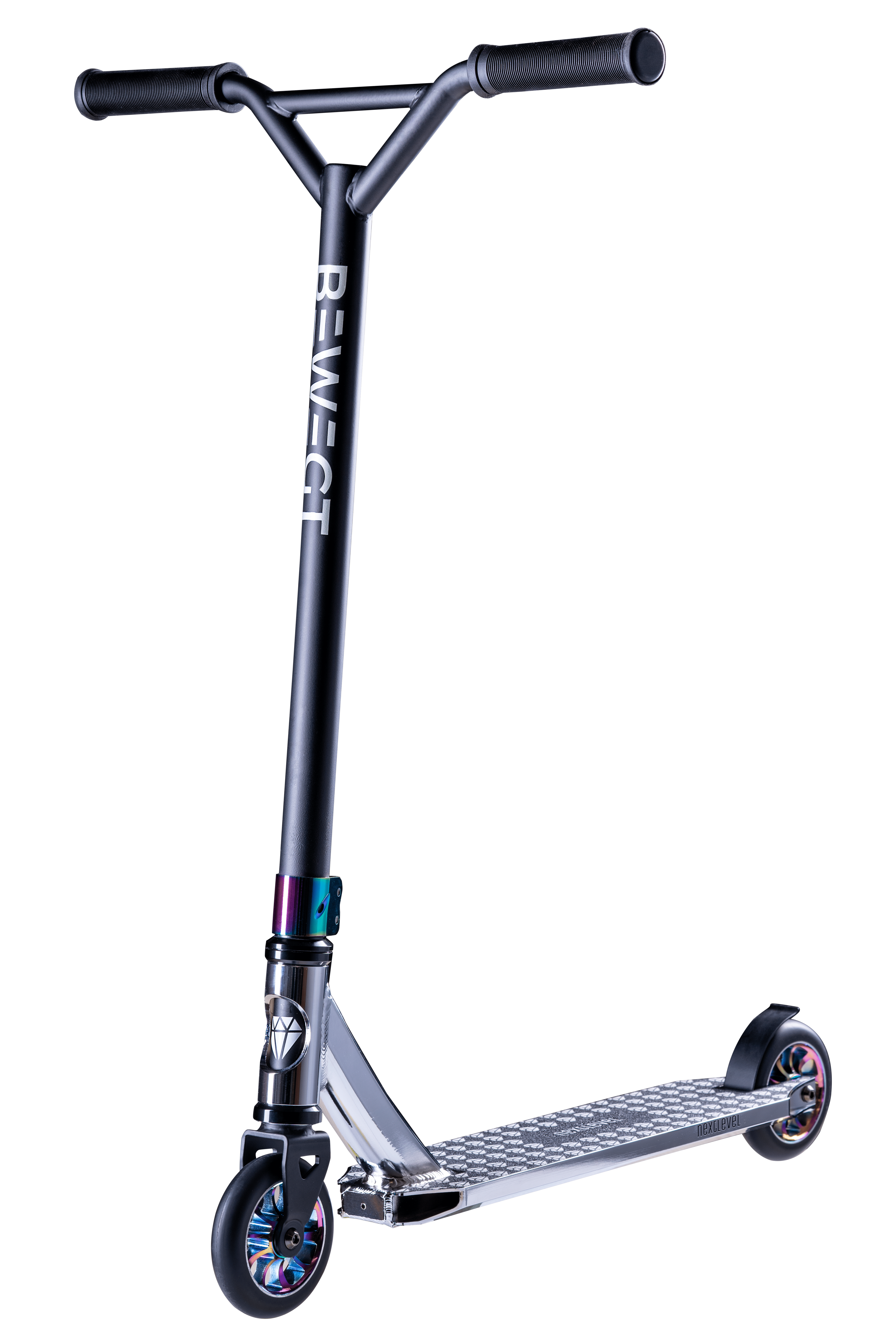 Deze geweldige stevige stuntstep voor beginners combineert alles wat een aanstaande jonge ster nodig heeft om veilig en succesvol de eerste trucs te leren. Het stuur is verkleind en het voetbord wordt ingekort zodat zelfs de kleinste optimale veiligheid krijgen. En het beste van alles is dat de ingebouwde onderdelen van super hoge kwaliteit compatibel zijn. Dit betekent dat ze op elk moment kunnen worden verwisseld, ongeacht het merk en er kan bijvoorbeeld een groter stuur worden gebruikt. Meegroeien in de toekomst van stuntscooters. Details: - zwarte matte look. - ABEC 9 lagers. - 2 boutklemmen. - Voetrem op het achterwiel. - HIC-compressiesysteem. - Stuur met antisliphandgrepen. - hoogwaardig aluminium frame. - super robuust en perfect voor eerste trucs. Afmetingen: - Stuurhoogte: ca. 74 cm (totaal). - Stuurbreedte: ca. 45 cm (totaal) - Dek: ca. 11 x 45 cm (b x d). - Gewicht van het product: 3,3 kg. - Wielmaat: 110 mm. Materiaal: staal, aluminium, rubber.