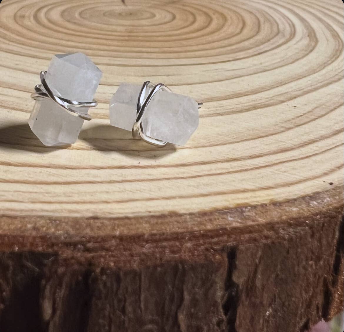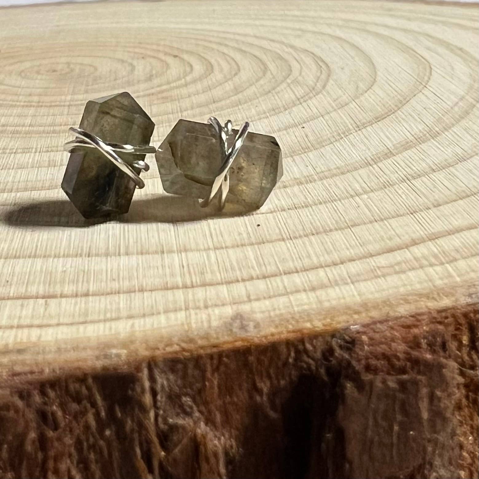 Amethist met dubbele afsluiting met de hand gewikkeld in sterling zilverdraad. Backings zijn hypoallergene siliconen. Vanwege de aard van echte edelsteengrootte, kunnen glans- en kleurvarianten enigszins verschillen.
