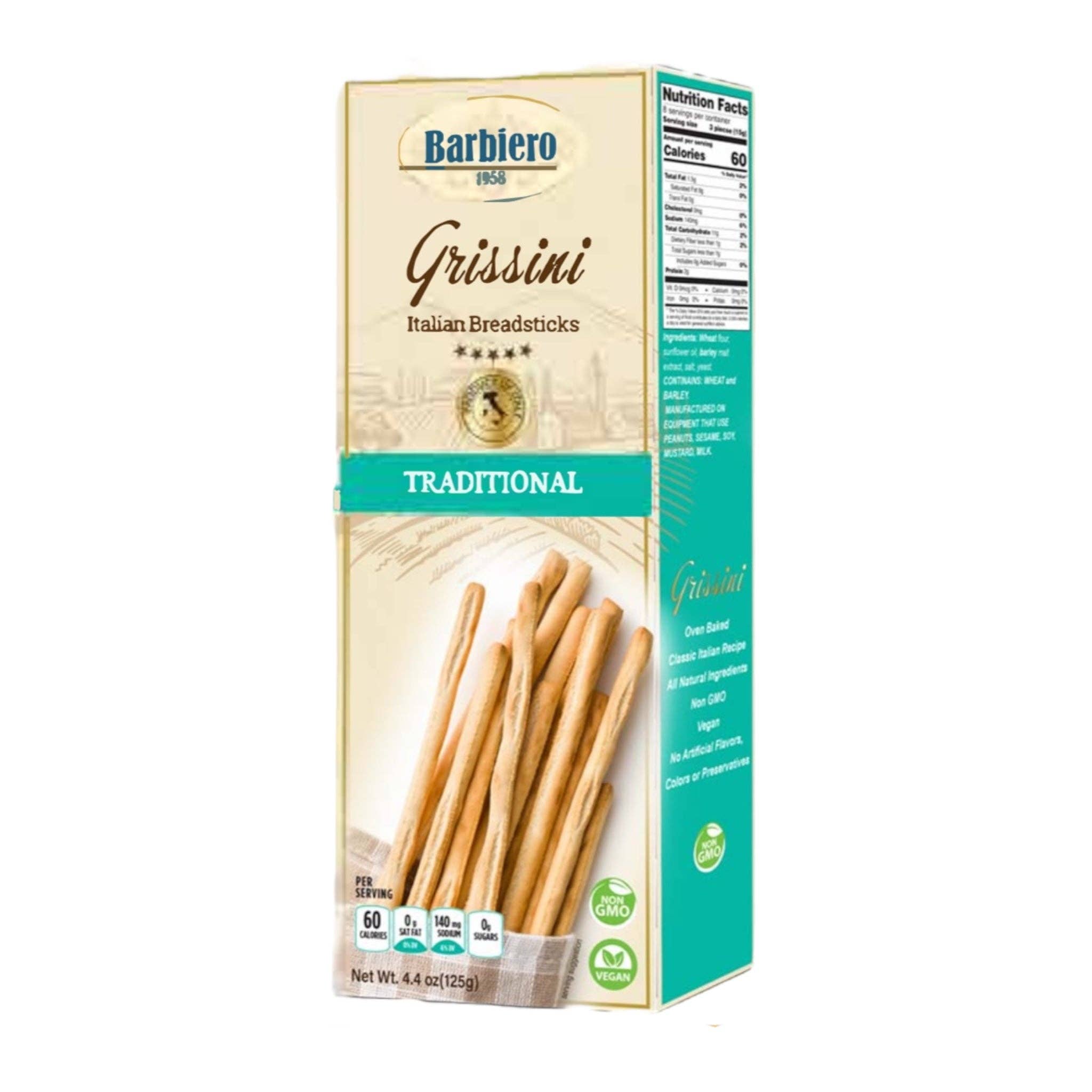 Barbiero Grissini Italiaanse broodstengels Rozemarijn 125g Deze geliefde, potlooddunne Italiaanse broodstengels zijn gemaakt met de beste ingrediënten. Grissini brengen charme en drama waar ze ook verschijnen. De geliefde dunne en knapperige Italiaanse broodstengels zijn geweldig naast een kaasplank, welkom verkruimeld over soep en zijn altijd kindvriendelijk. Op hun best behouden ze hun knapperigheid en crunch, stralen ze imperfecte handgemaakte charme uit, en kunnen ze (mogelijk) bloemen evenaren wanneer ze worden gerangschikt in "boeketten" over de lengte van een tafel. Non GMO VEGANISTISCH