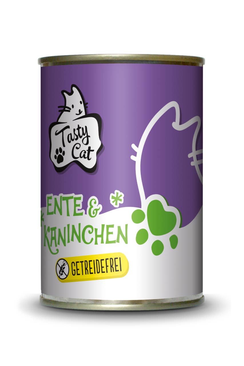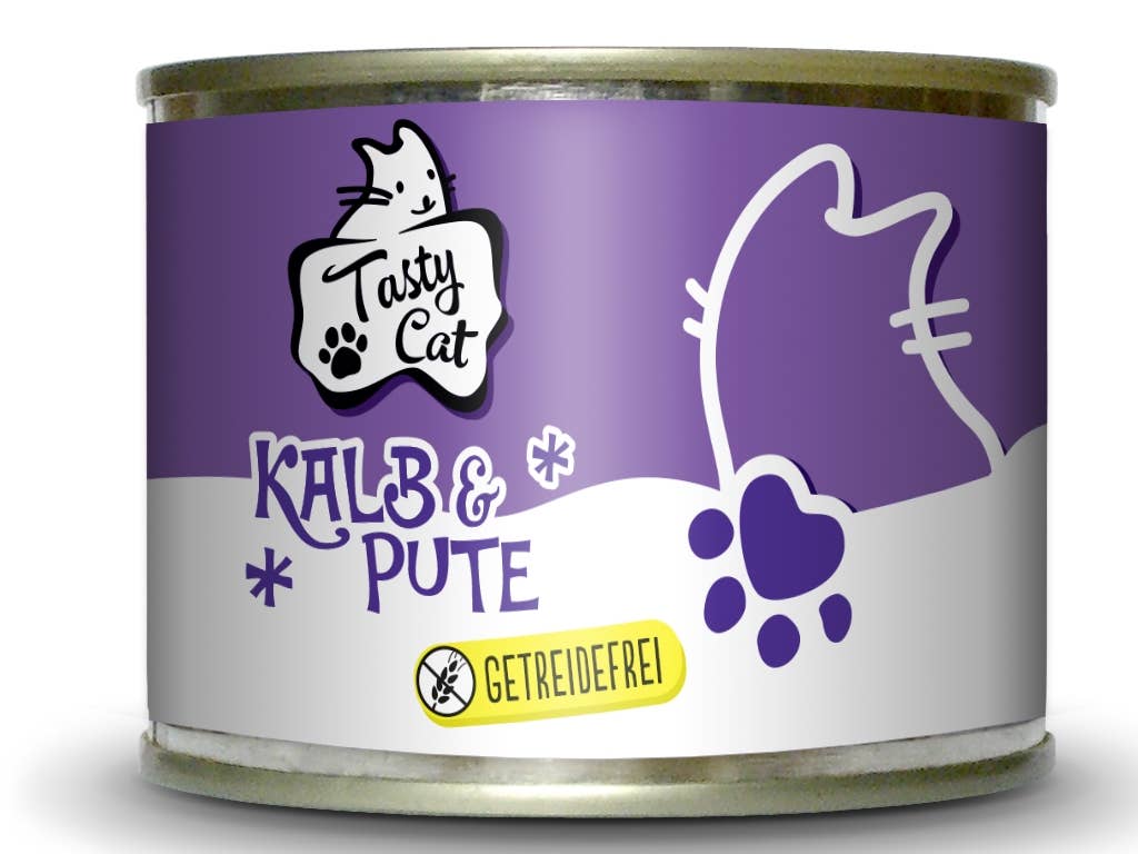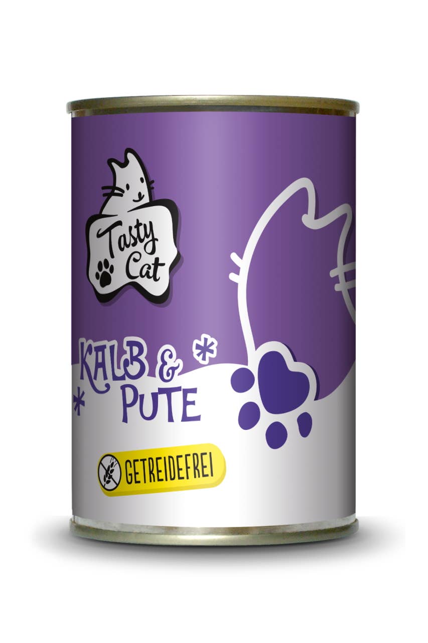 TastyCat - holistische voeding in harmonie met de natuur: - Puur vlees in blik - Voldoende taurine - Vrij van granen, gluten, soja en lactose - Zonder kleurstoffen, geurstoffen en lokstoffen - Geen conserveermiddelen - Productie met hulpbronnefficiëntie - Geen dierproeven Samenstelling: kippenvlees, lever, hart, spiermaag (39%), rundvlees, hart, long, uier (30%), vleesbouillon 30%, mineralen (1%) Analytische bestanddelen: ruw eiwit 11,0%, vetgehalte 6,0%, ruwe as 1,9%, ruwe celstof 0,4%, vocht 79,0%, calcium 0,26%, fosfor 0,20% Voedingsadditieven per kg: vitamine D3 200 IE, vitamine E (alfa-tocoferolacetaat) 50 mg, taurine 1500 mg, jodium als calciumoidaat, anhydraat 0,2 mg, mangaan als mangaan(II)sulfaat 2 mg, zink als zinksulfaat monohydraat 20 mg