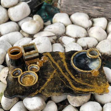 Deze ronde sieradenschaal met een stralend zonnenontwerp wordt aangevuld door een maansikkelvormige schaal die er naadloos op stapelt. Perfect om kleine schatten te ordenen, voegt het dubbele ontwerp een vleugje kosmische magie toe aan je interieur. Een doordacht en stapelbaar cadeau, dit hemelse duo is een schitterend symbool voor iedereen die droomt onder de sterren. Ontworpen door Something Different Wholesale als onderdeel van de Celestial Dreams collectie met trendy zon- en maangerelateerde woondecoratie en cadeaus.