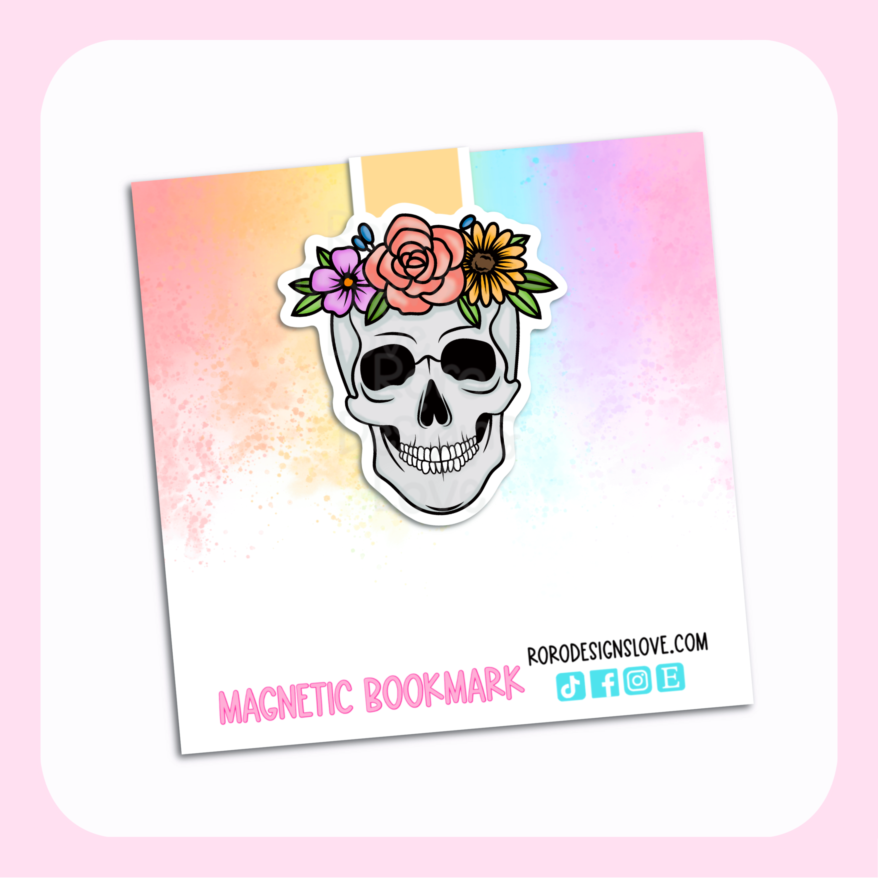 Deze boekenlegger is licht van gewicht maar stevig genoeg om je plek op je boek te markeren. Je hoeft de pagina niet meer te vouwen of een plakbriefje te gebruiken. Deze dubbelzijdige magnetische boekenlegger is de perfecte aanvulling op je winkel. Kijk op rorodesignslove.com voor recensies over deze bladwijzers! MATERIALEN Alle bladwijzers zijn gemaakt van glanzend karton MAATVOERING Bladwijzers zijn ongeveer 2,5 cm lang wanneer ze worden gevouwen en op de pagina worden geknipt.