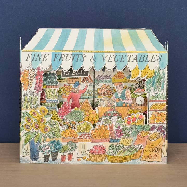 ES1700: Antiekwinkel Die Cut stanskaart door Emily Sutton. De stanskaarten zijn 148 mm x 210 mm, ze worden verpakt met een envelop in een biologisch afbreekbare cellofaanhoes.