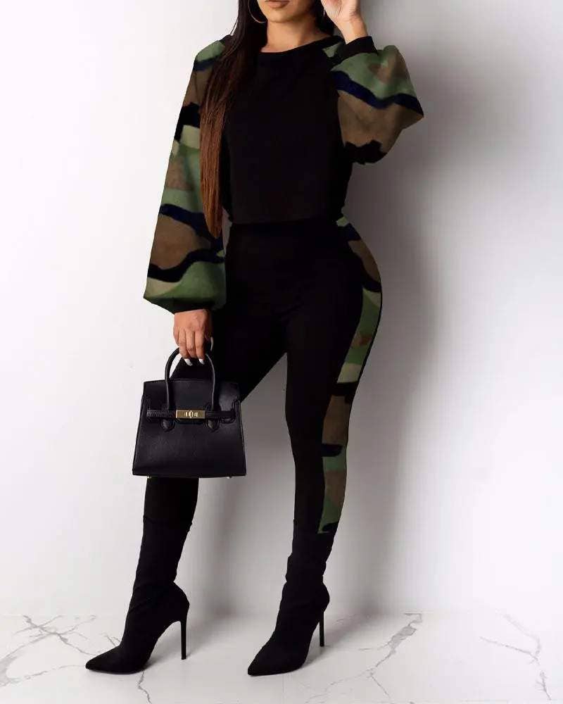 set met lange mouwen en split met pailletten