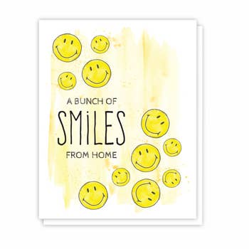 This cheery, hand painted smiley face can hardly be contained. Sure to send the happiest vibes. Idlewild Co. greeting cards feature our original, hand-painted illustrations, and are printed in vibrant color on beautiful, opaque FSC-Certified papers. We pair each with a matching envelope and they are delivered in a cello sleeve–or opt in for our "naked" option, which will ship packaging free, and includes a "card clasp" removable sticker packaging. • Heavy, matte eggshell stock • Blank Inside • 4 1/4" x 5 1/2" • Paired with matching envelope