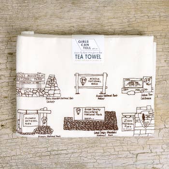 City Collections Greenville White cotton tea towel with black illustrations. 12x17 inches