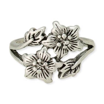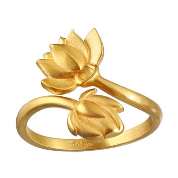 Sterling Silver Engraved Lotus Ring, Adjustable