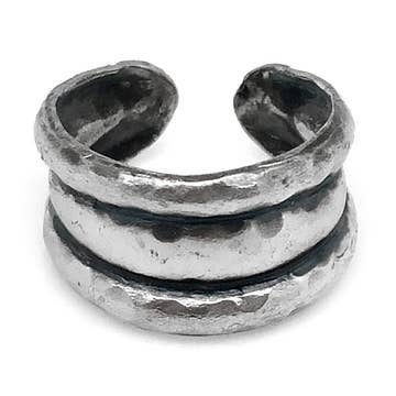 A lovely set of rustic sterling silver stacking rings to mix and match. Each band is made from a different shape stock and has a hammered texture, there is one square band, one dotted, one hammered, and one with a unique dashed texture. Sets are available in a bright or oxidized finish and are made to order in whole and half sizes 5 through 9.