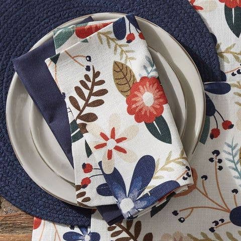 Printed floral pattern on one side of soft cotton linen. Fabric content: cotton. Machine wash cold, reshape and hang or dry flat unless otherwise noted. 15" x 72".