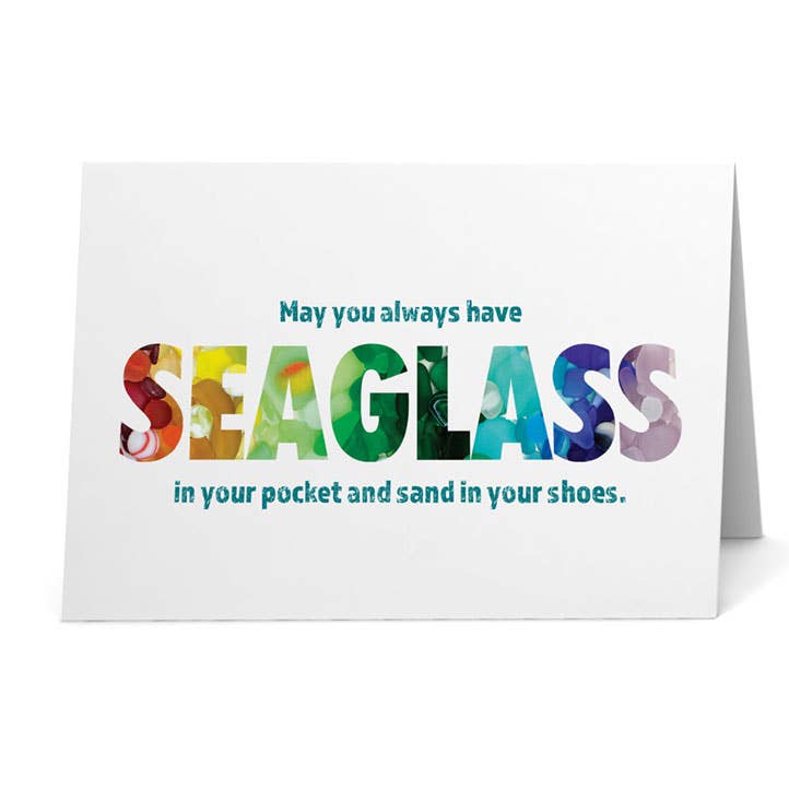 This sea glass art design on this greeting card was created with surf-tumbled pieces of beach glass. The mosaic was photographed and is printed on matte, heavyweight, bright white card stock. Blank inside. Each card is individually packaged with a color-coordinated envelope in a clear, protective sleeve. Note: The high-quality print looks real, but it is not actual sea glass.