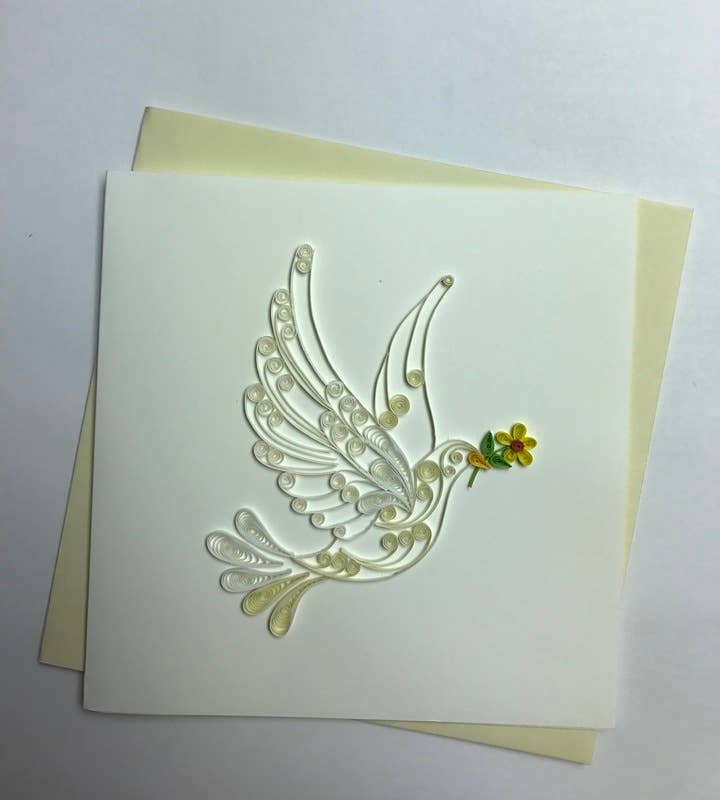 Daedre'sOriginal Artwork...Our paper is recycled with a High Post Consumer Content...our cards are printed and Hand Detailed with just a touch of sparkle in California. Our Note Cards are 4.25" x 5.5" when folded and come with envelope and Information Back wrapped in a clear Sleeve.
