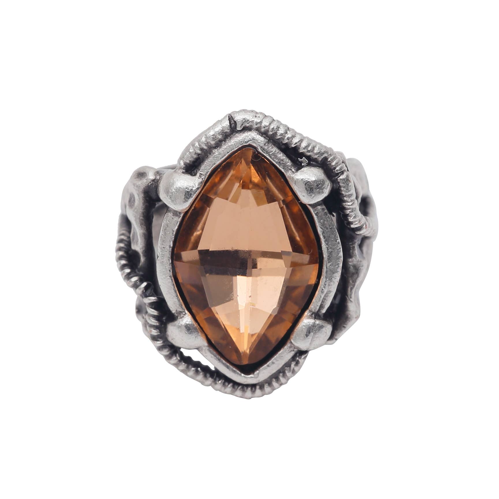 Sterling silver copper bronze and faceted 4-5mm stone, champagne cz please specify size required, also available in other stones. Dimensions: 12-15 mm to width tapered to 7 mm