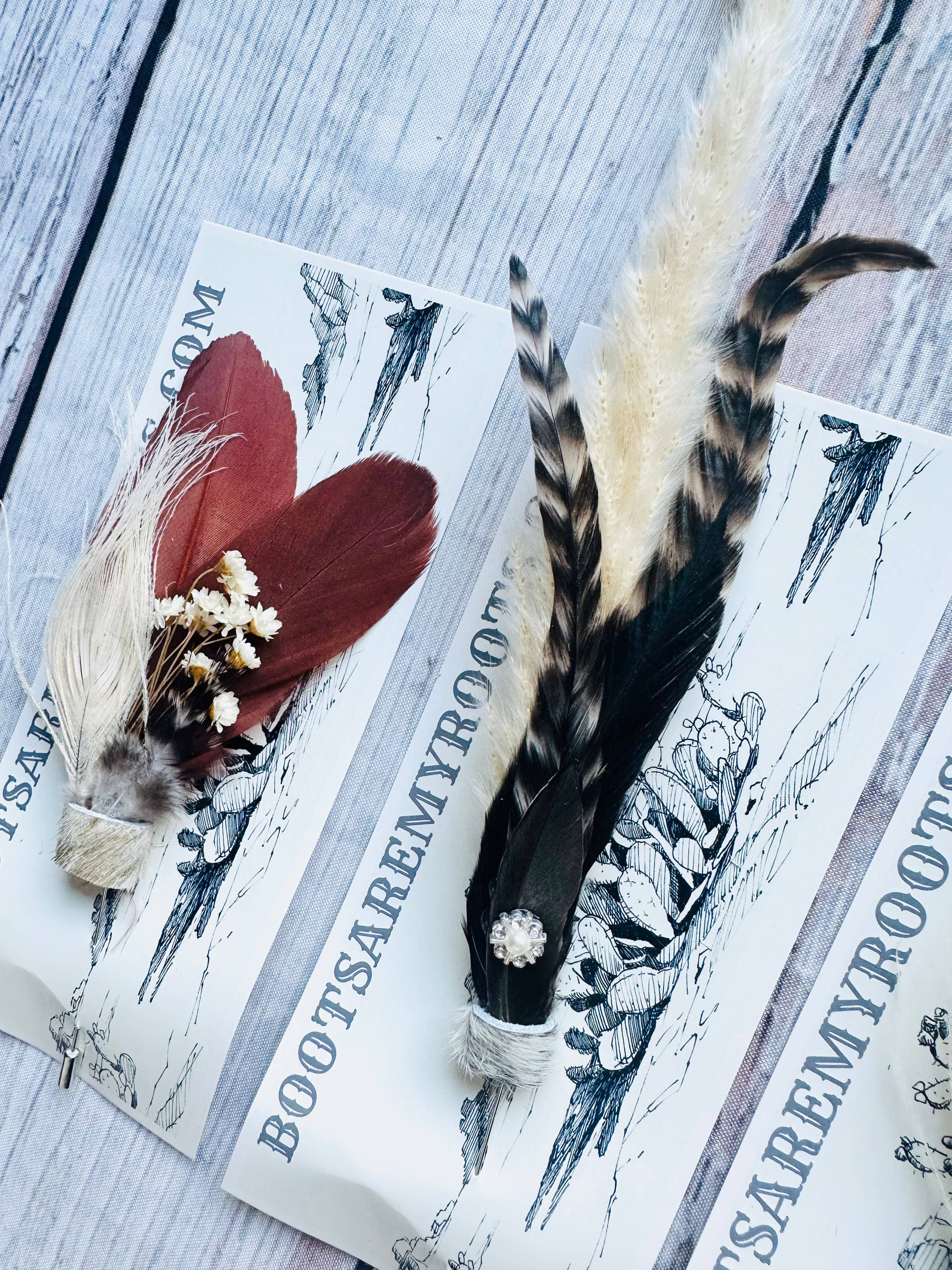 This versatile piece can be worn as a wrap bracelet, a lariat necklace, a choker, a headband, an armband, an ankle bracelet, a hat accessory, or even a belt. Get creative! The braided deerskin leather is finished with handmade brass beads and pheasant feathers. Available in 12 colors. Â One size.