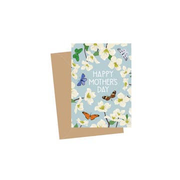 Card Size: 5" x 7" Envelope: A7 100% recycled kraft brown envelope Paper: Cards printed on 80# 100% recycled, white fiber card stock. Tiny Envelope size: 1" x 1.5" Features hand illustrated floral graphics in soft coral and mint. One tiny mint green envelope contains a blank card for writing your own messages. Packaged in a clear cellophane sleeve. Front: Happy Mother's Day Inside: blank
